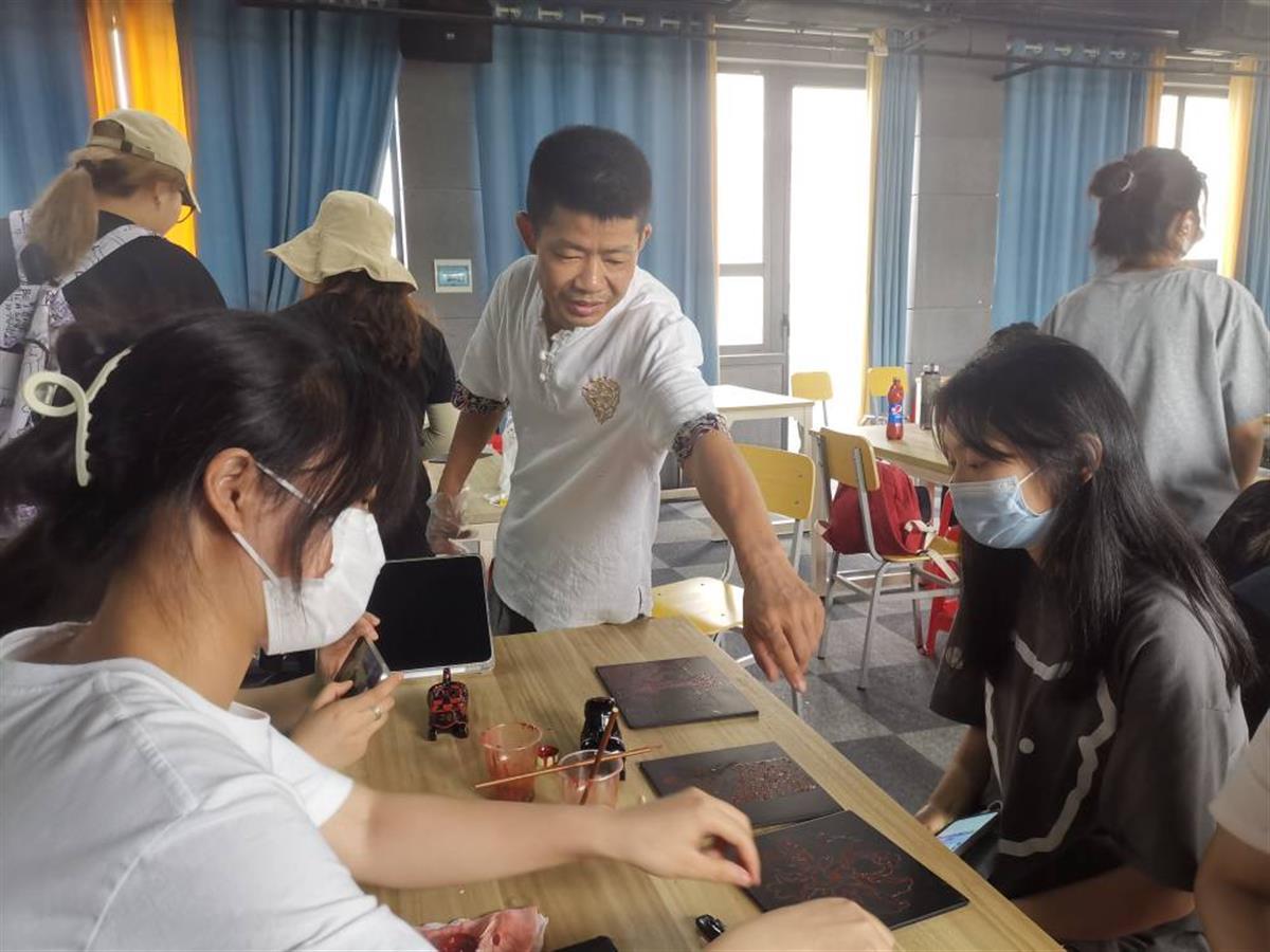 楚式漆器传承人邹传军指导学生制作漆器