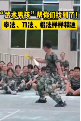 在不久前,一段柳州男生军训期间“耍大刀”的视频火了。视频中的男生名叫陈明宇,今年15岁,是柳州高中高一年级学生,在军训间隙表演的一套刀法震撼全场。在今年8月举行的广西壮族自治区第十三届学生运动会上,他获得了中学组自选棍术项目的冠军、自选刀术亚军,在自选长拳上也取得了不俗的成绩。该视频发出后,立马获得无数网友点赞,有人称“果然英雄出少年”,还有人称赞“帅气十足”。陈明宇表示,希望自己未来进入一所军事院校,为国效力。