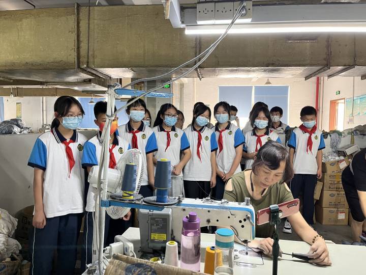 9月9日下午,汤浦镇中学开展了以“把课堂设在工厂,把教室搬到车间”为主题的劳动教育开学第一课。汤浦镇中充分利用“童装产业园”附近的地理优势,充分挖掘地方优质企业资源,对接了汤浦镇小一峰童装厂,让孩子们进入工厂实地感受童装的制作,享受家门口的劳动课程学习资源。