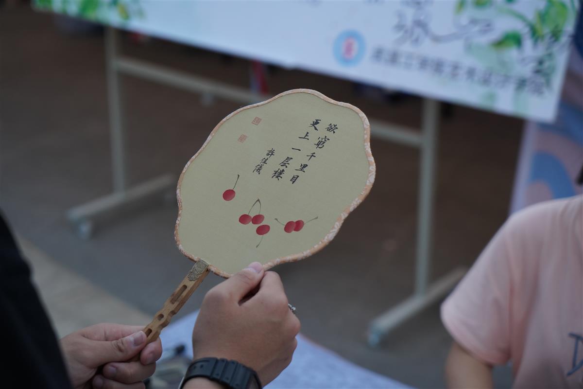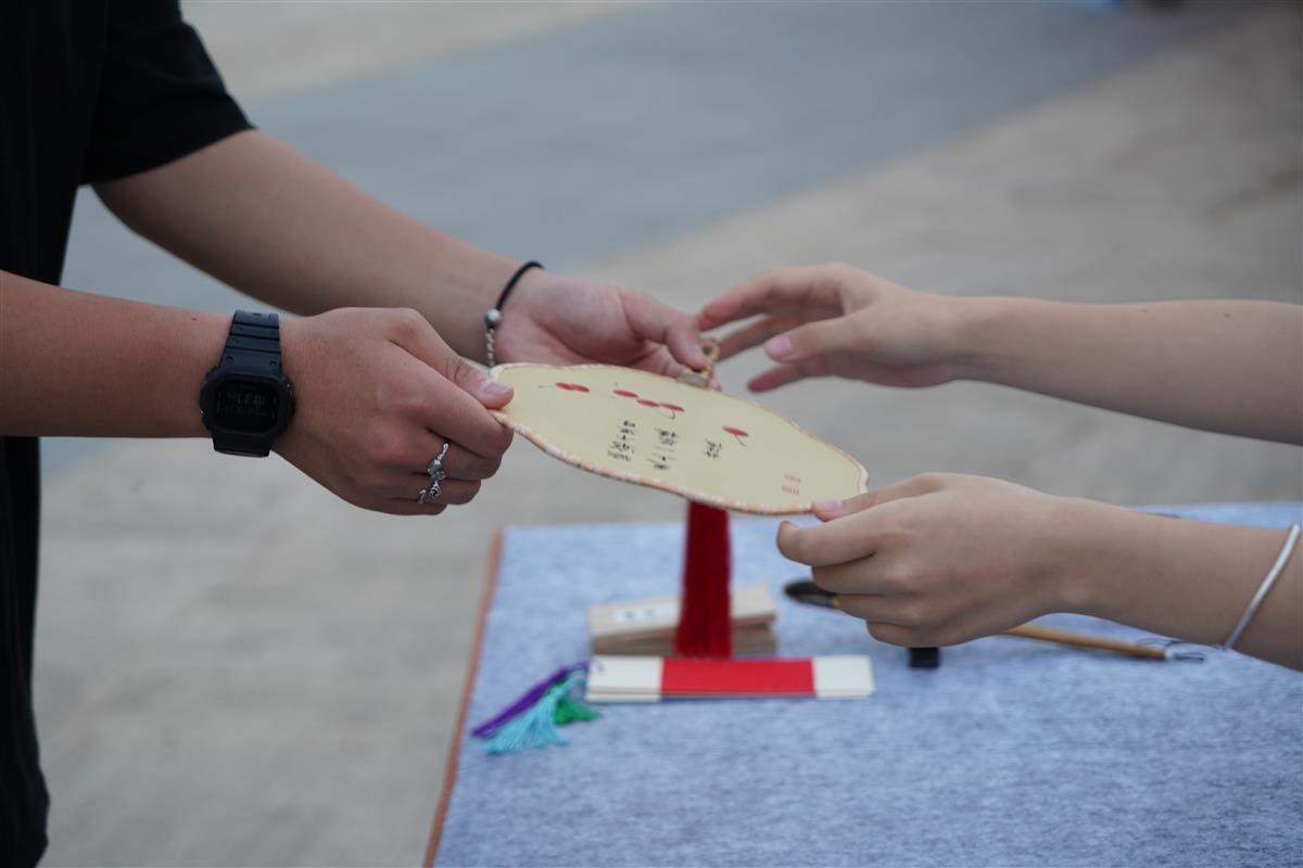 “现场亲手书写的团扇,有温度有寄托,是学长学姐对新生弟弟妹妹们的宠爱,也体现了书法独有的文化魅力。”该院书法教师段美婷说,这份礼物看似“轻薄”,实则用心良苦。“完美握笔,是成为艺术匠人的第一步。学生们通过‘见面礼’不仅能体验千百年来文化传承的汉字书写之感,一笔一划构建起来文字意韵、眼读手写时带给的丰富感受,更能让学生们体会这种文化背后所蕴含的价值感。见字如晤,翰墨传情,这些是情怀,更是传承,饱含学校对新生的尊重与心意。”