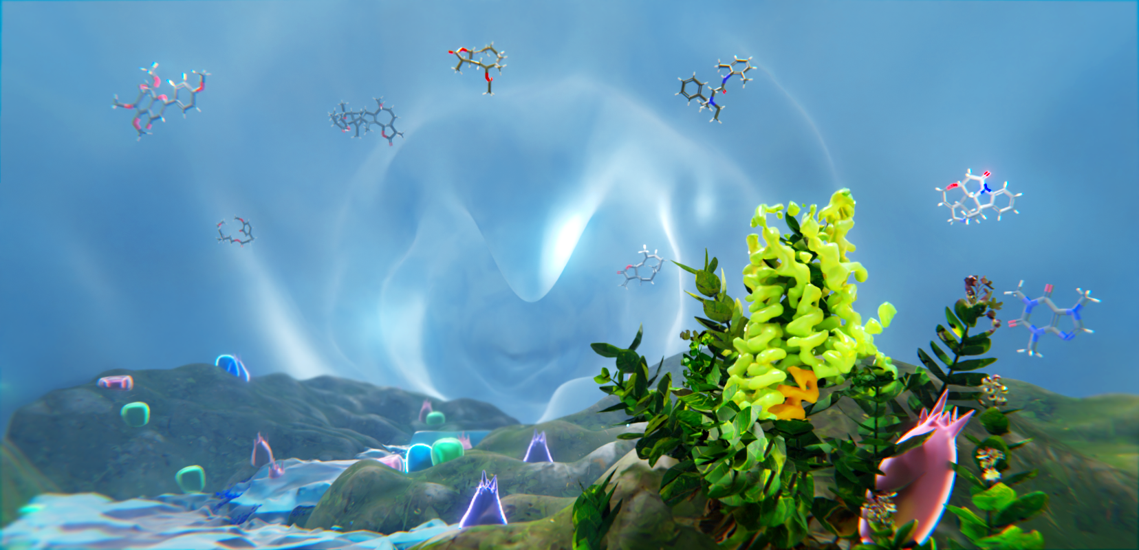 不同苦味分子激活表达在味蕾上的苦味受体TAS2R46的艺术展示图(JulieLiu设计绘制)。本文图片均为上海科技大学图