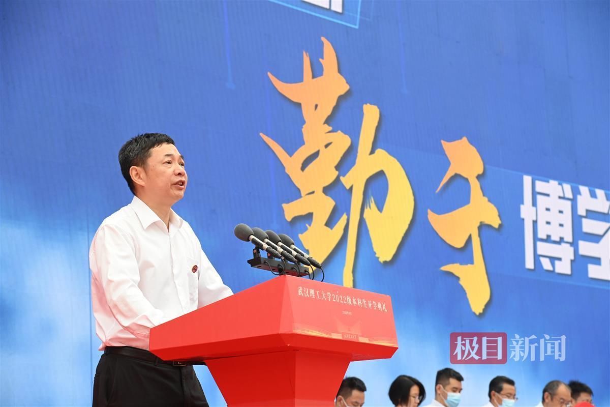 杨宗凯在发言中对新同学的到来表示欢迎,“此时此刻,我能真切地感受到你们的好奇与忐忑、兴奋与期待、喜悦与激动,我和你们一样也感到十分的高兴与激动。”2022级学生是他作为武汉理工大学校长迎入校门的第一批新生。这批优秀学生中有材料科学与工程学院的“珠峰计划”第一人杜何有同学,以高考629分的高分谱写勤学奋进故事;有自动化学院的闫卢昊同学,曾获湖北省初中生首枚信息学国际竞赛金牌;有交通与物流工程学院本硕实验班的陈莹同学,热心服务他人并为迎新志愿者书写浪漫。杨宗凯表示,希望通过宝贵的开学第一课,与同学们共同感受理工之大,共同把握变革之局,共同探求卓越之道,在追求卓越的人生道路上求“一流”学问、创“一流事业、成“一流”人才。