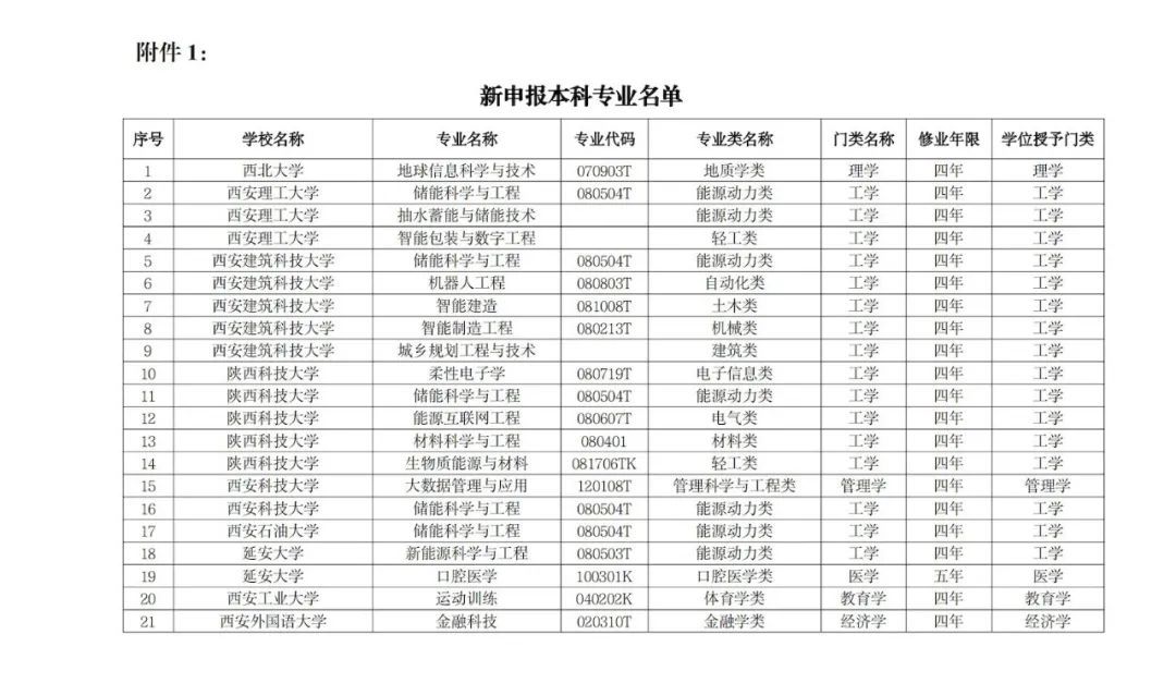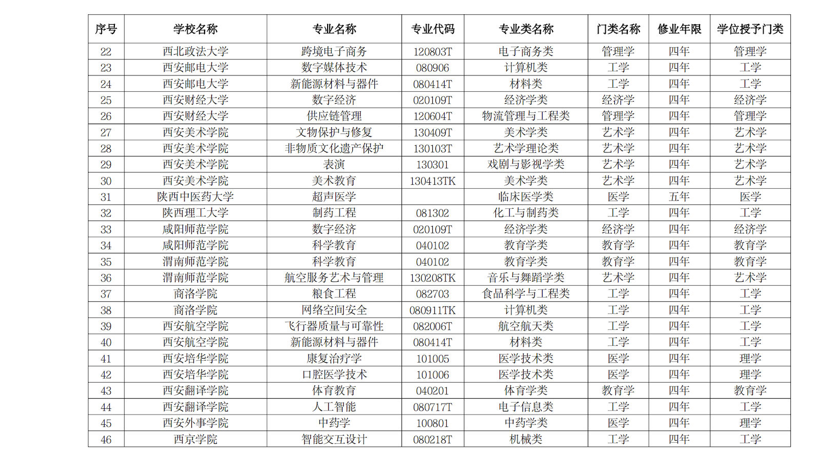 新申报本科专业名单(央广网发陕西省教育厅官网截图)