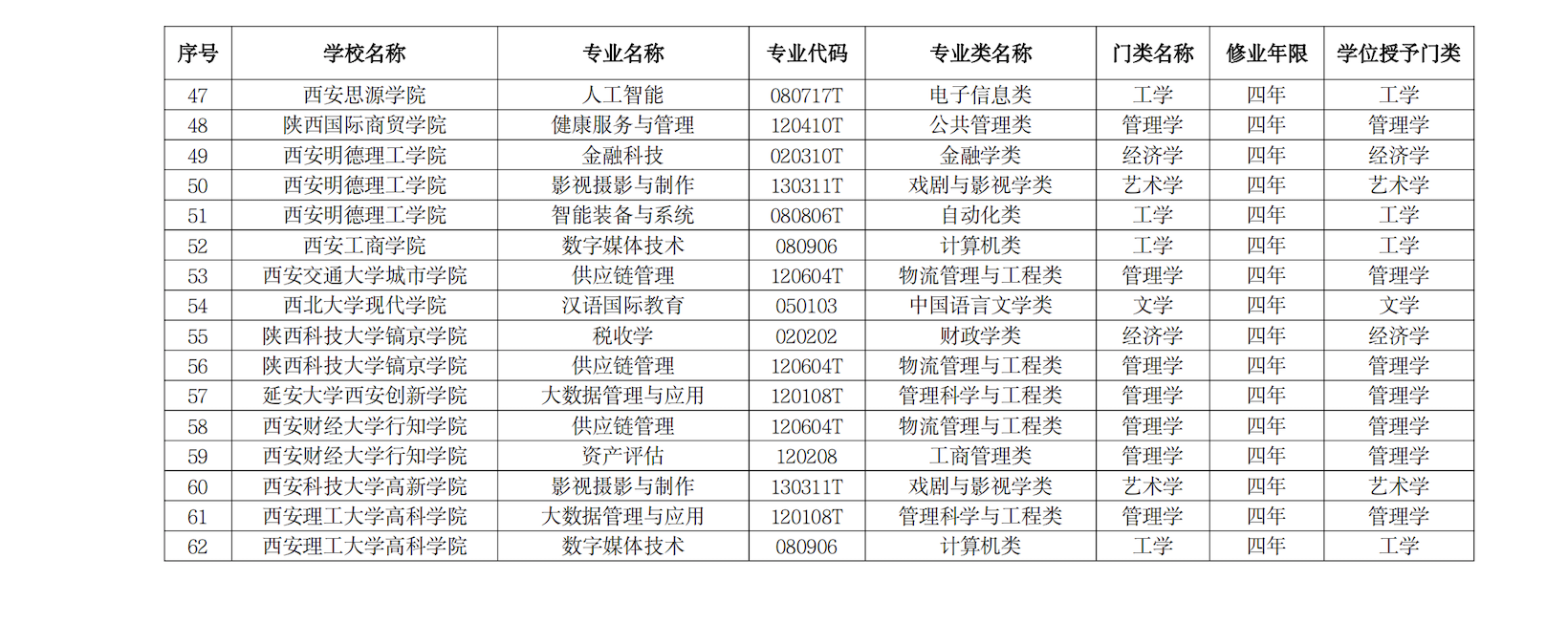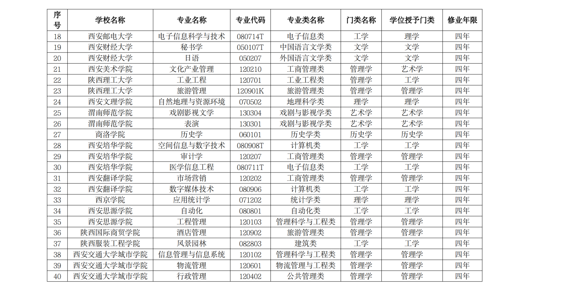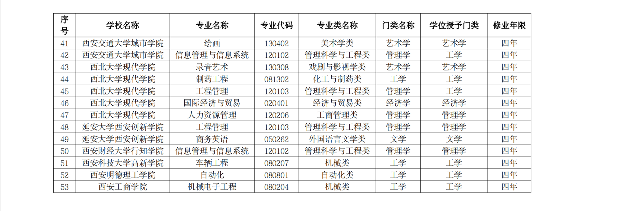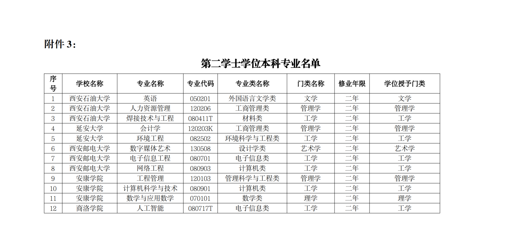 第二学士学位本科专业名单(央广网发陕西省教育厅官网截图)