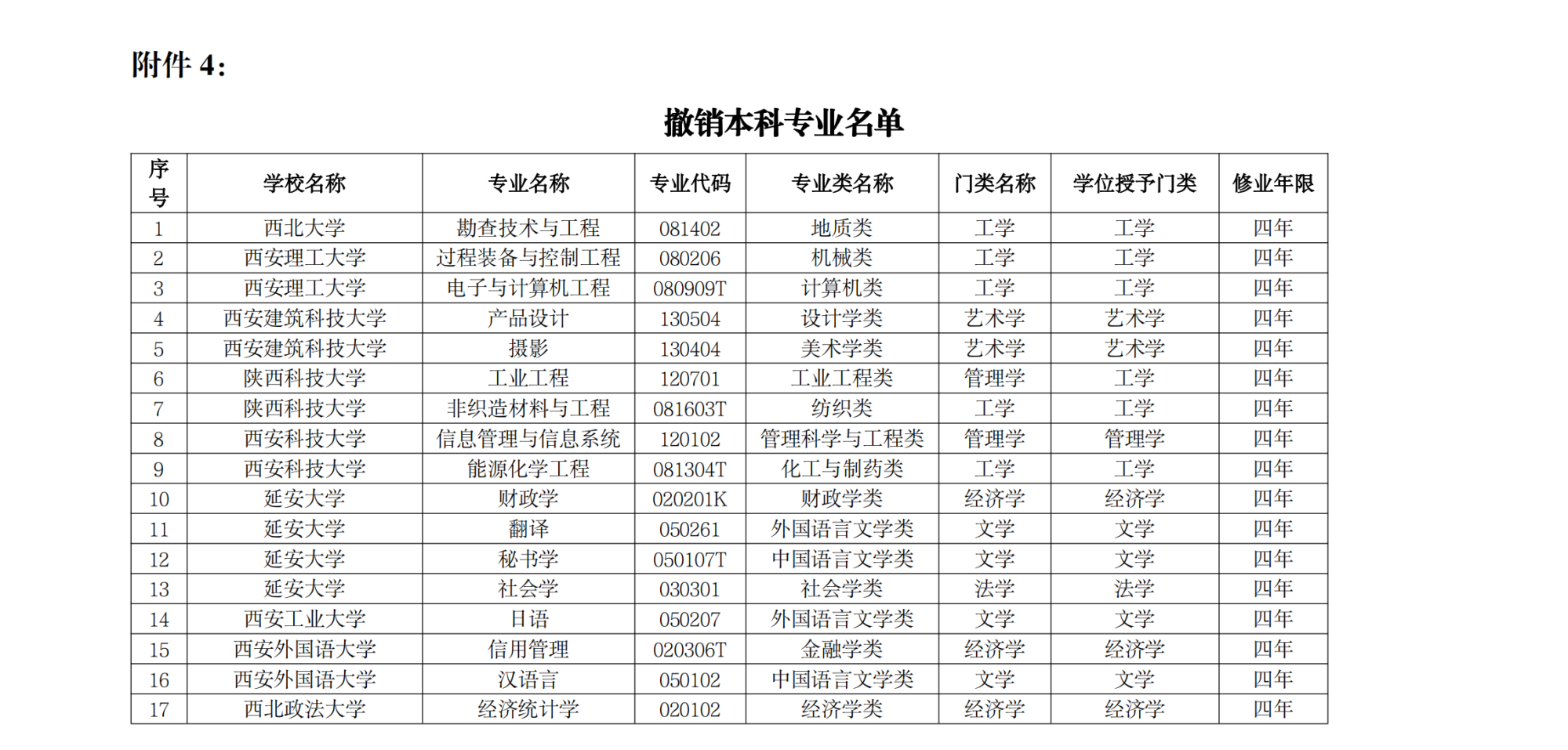 调整学位授予门类本科专业名单(央广网发陕西省教育厅官网截图)