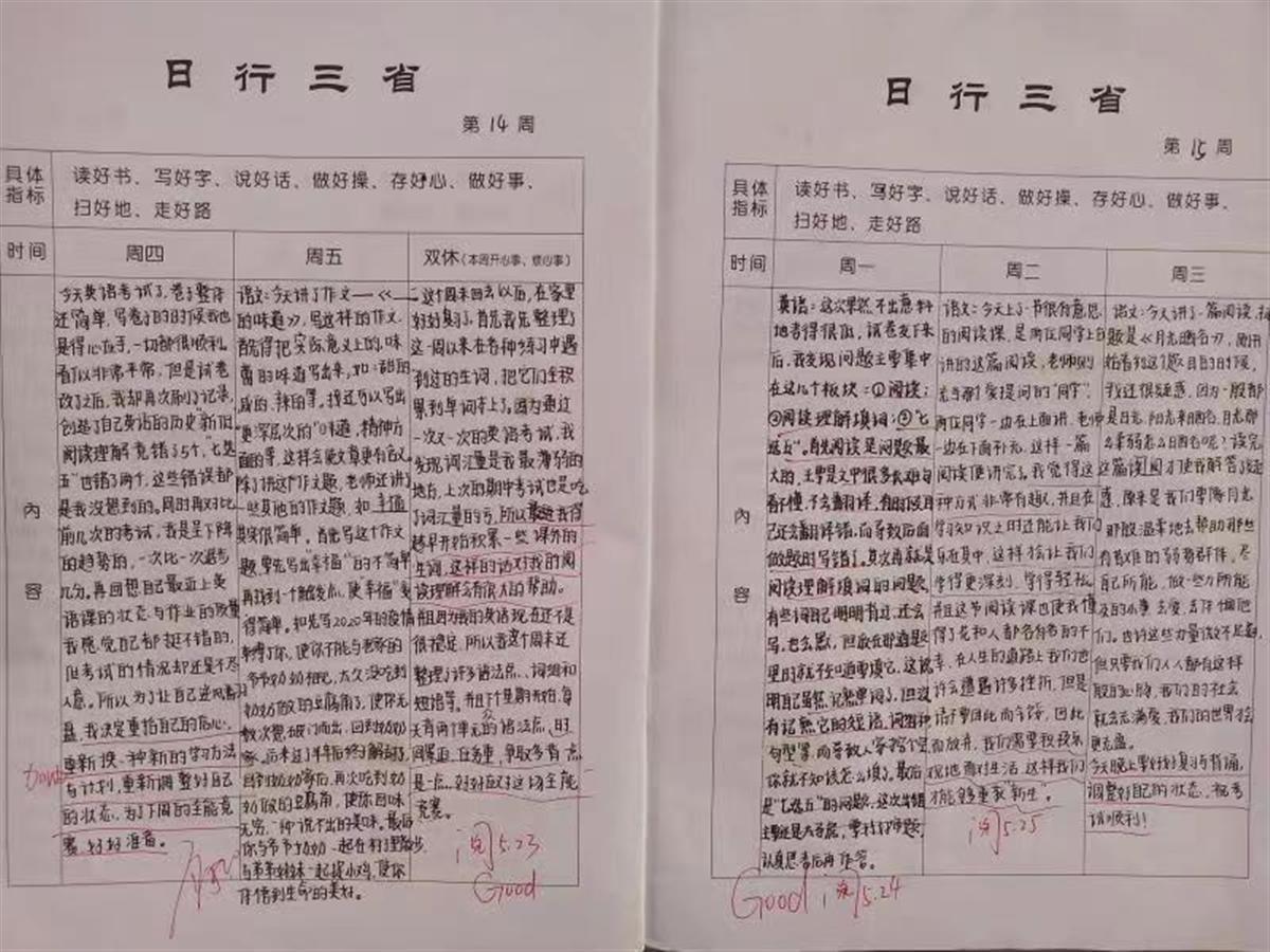 学生每天都写“日行三省”