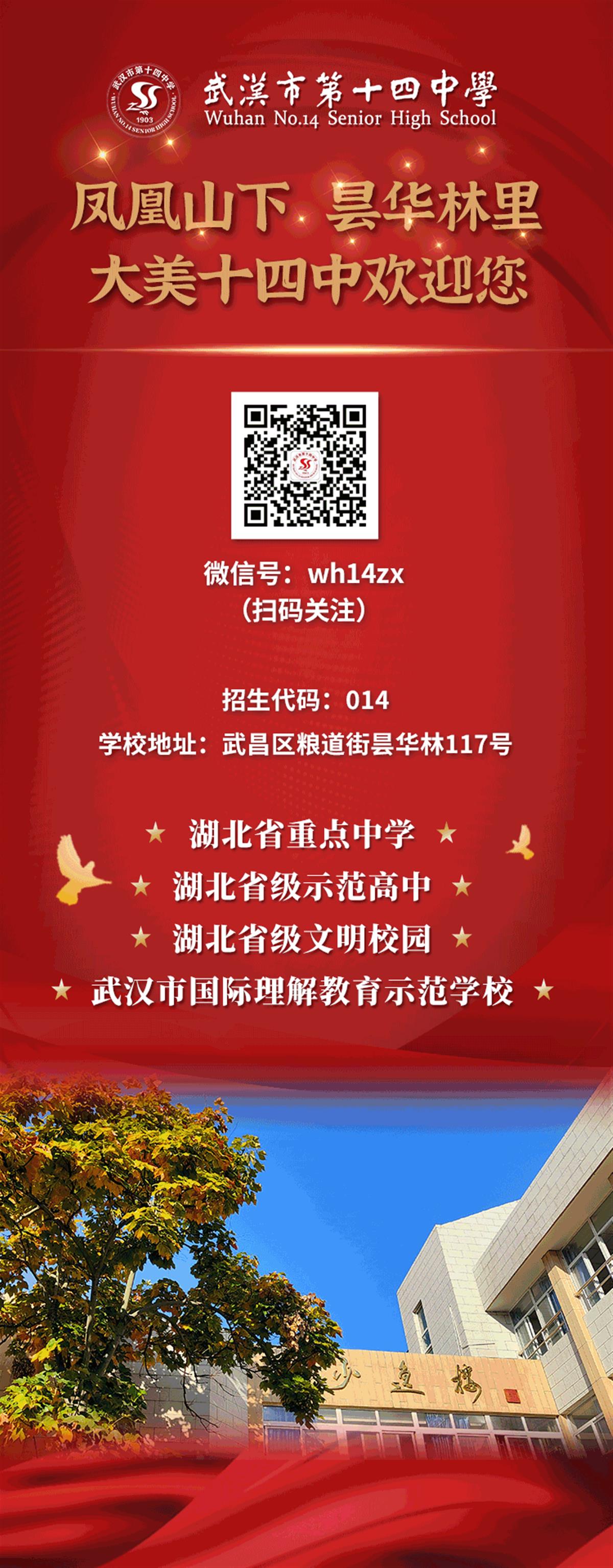 凤凰山下,正值金秋;昙华林里,赓续峥嵘。2023年10月16日,武汉市第十四中学将迎来120周年华诞。