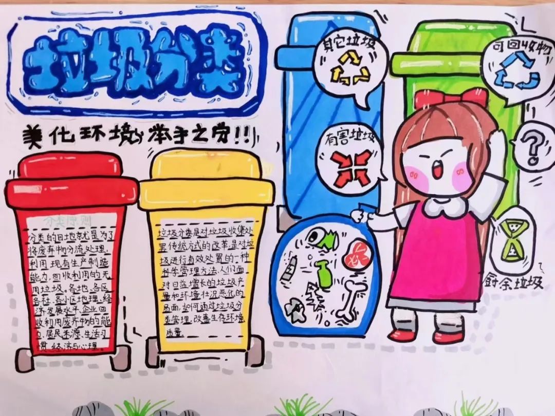 为了将自己对垃圾分类知识的了解传播给更多人,队员们创作了手抄报,用精美的构图、精彩的内容、斑斓的色彩表达了自己对垃圾分类的理解与体会,为进一步树立绿色低碳、环保健康的生活理念打下了坚实基础。