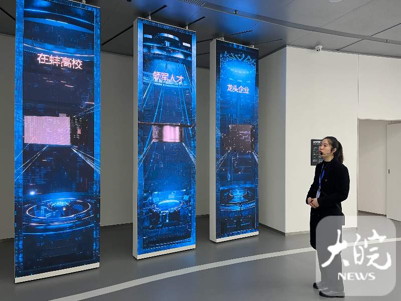 在展馆的序厅,讲解员通过《创新之城·拥抱未来》宣传片介绍蚌埠科技创新整体情况。进入创新足迹沉浸式观影空间,影片用4个故事篇章带大家回顾蚌埠创新之路。