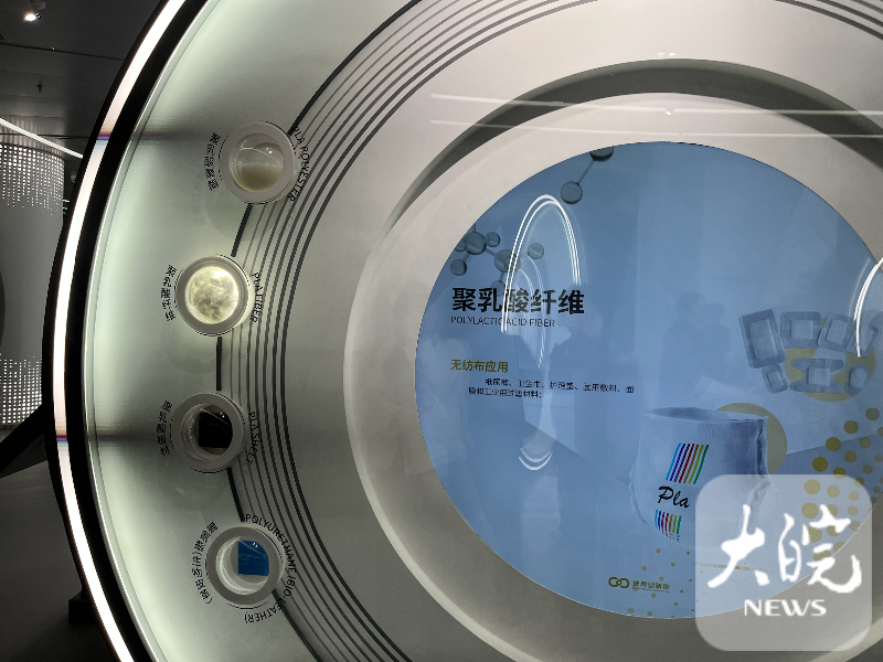 聚乳酸的实际应用场景有聚乳酸制成的四件套,成人服饰、窗帘、家居产品等,这些产品在使用完之后都可以被完全降解,不会污染环境。讲解员向记者介绍,同时,由于聚乳酸具有酸性特点,生产的纺织品具有抗菌作用。
