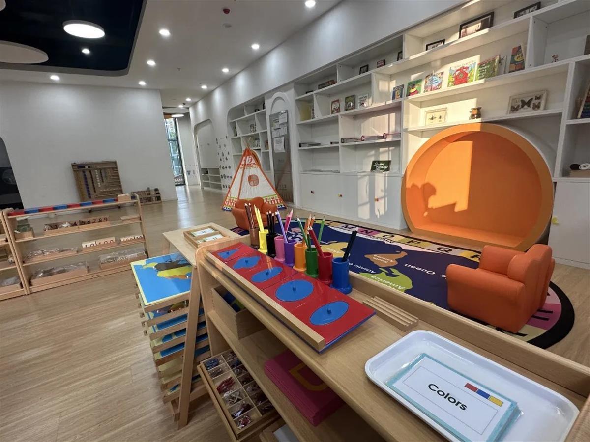 以光谷康桥蒙特梭利幼儿园为例,便有阅读区里花费数十万元购回的国外原版书籍、绘本,也有全部取得了相应年龄段的国际蒙特梭利教师认证的老师(全球持有者仅数千人,在武汉极为少见),有126种蒙氏教具,还有各有独特功能设计、贯彻“有准备的环境”概念,帮助孩子从周围环境中学习的空间……