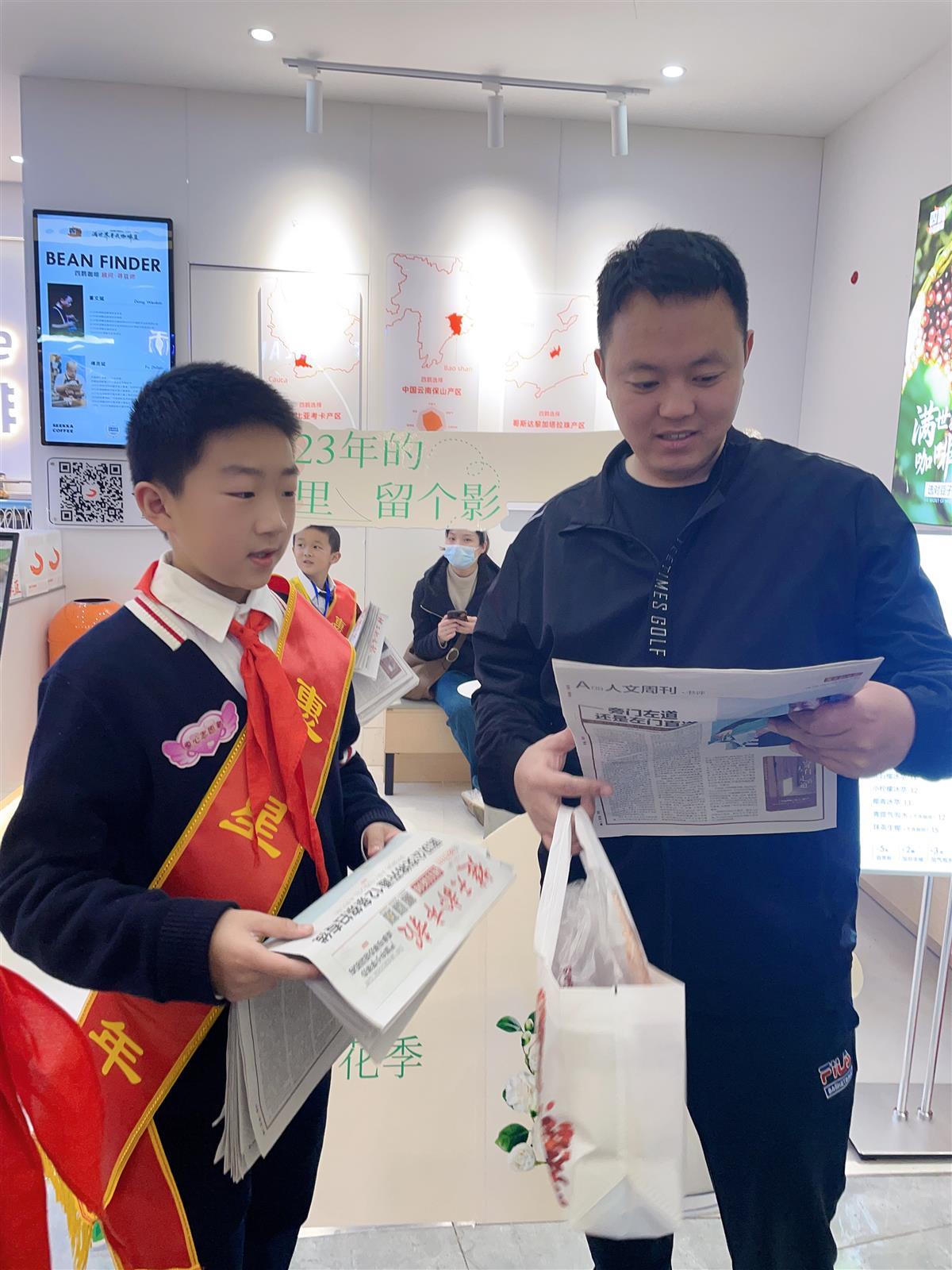 “相信我们点点滴滴的爱心将汇聚成一股强大的暖流,流向每一位需要帮助的人,让他们感受到温暖。”把手里的报纸卖完后,一想到得到的钱还可以帮助他人,五(5)班的邵龙泽成就感满满,他说起先自己还有些紧张,后来卖出第一份报纸后逐渐有了信心,“在这过程中我也学会了如何跟人交流沟通。”他说。