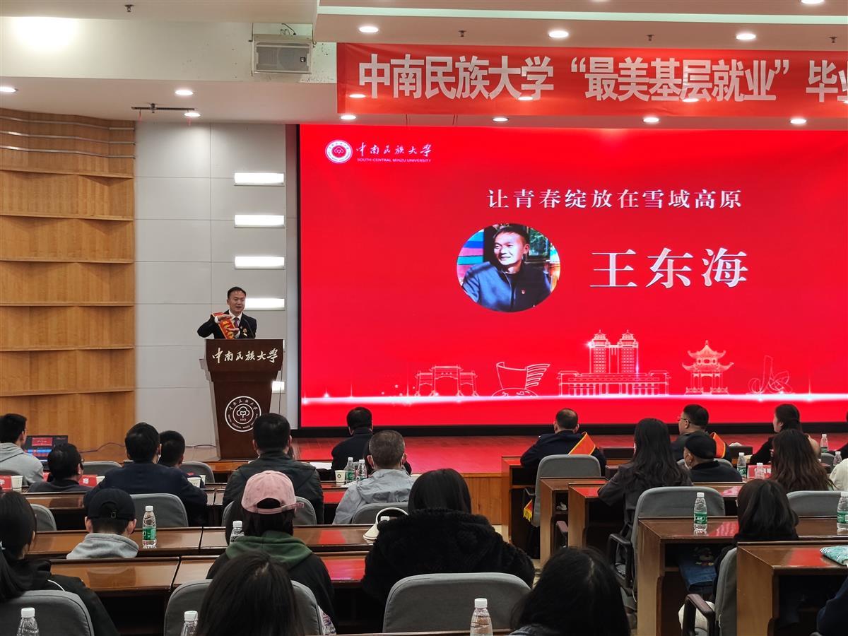 “或许不是我把青春献给了基层工作,而是基层工作赋予了我永恒的青春。”3月31日晚,中南民族大学“最美基层就业”毕业生事迹报告会在学术交流中心国际厅举行。会上,该校六名优秀毕业生分享了他们在基层的奋斗故事,并做交流分享。中南民族大学党委书记边境、副书记白江源、副校长杜冬云,校招生与就业工作处等相关负责人出席活动。报告会线上线下同步进行,向全校师生实时进行了直播。