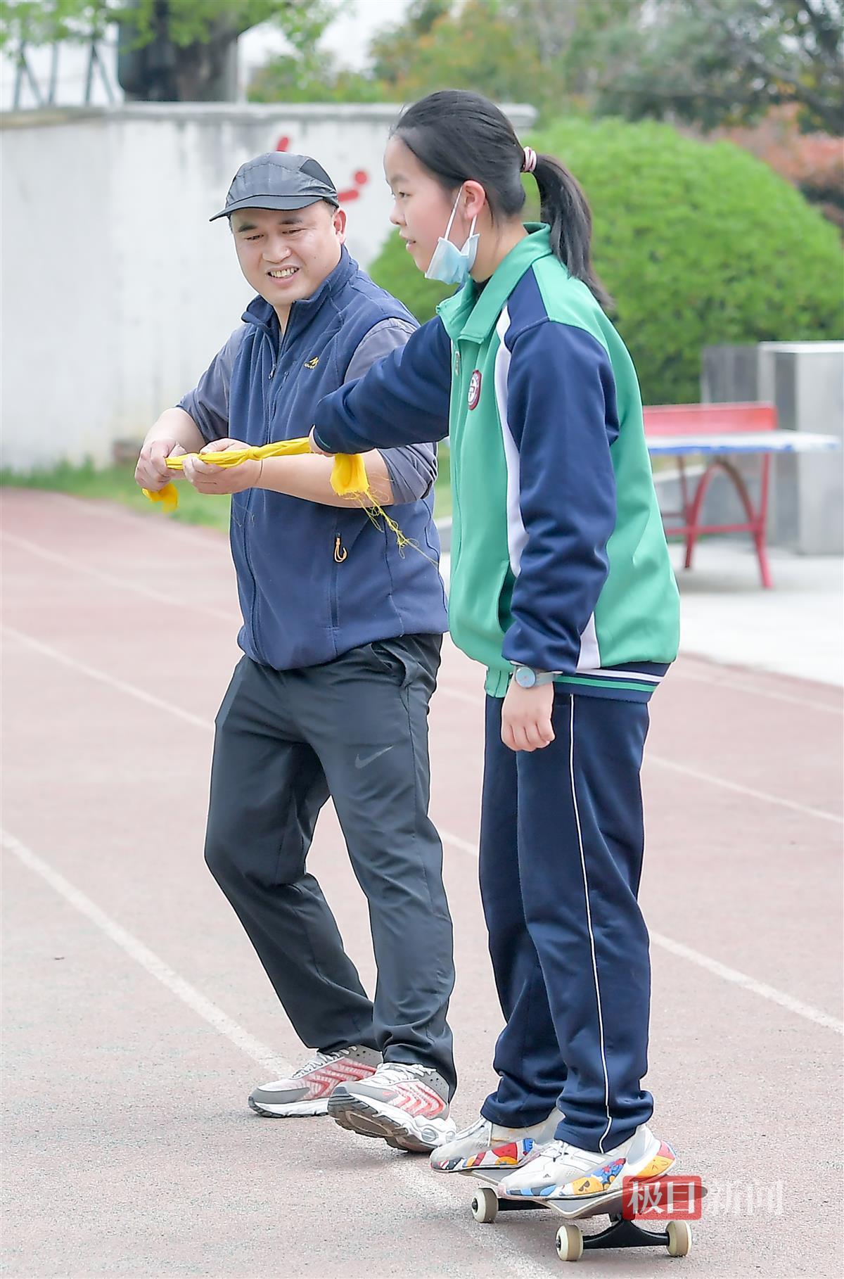 排球、篮球、滑板、平衡车、自行车、手推车……当天户外物理实验课用到的道具,一半是同学们自发从家里带来的,徐老师准备用这些道具让学生“看清”惯性现象。