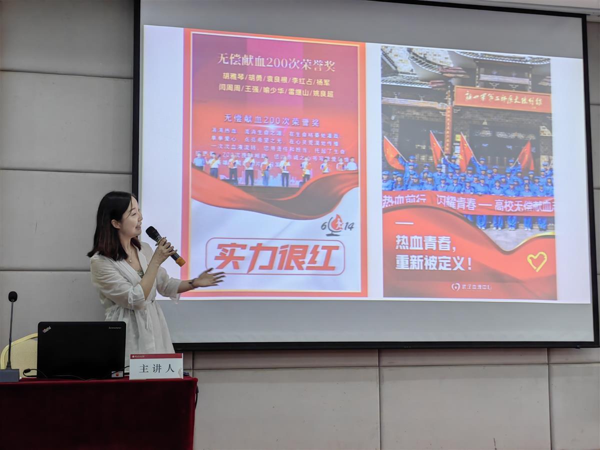 活动中,武汉血液中心团委书记余谨讲述了《武汉血液保卫战中的青春力量》主题团课。特殊时期,在血液库存告急的情况下,武汉血液中心献血服务科党员、团员青年们不怕苦、不怕累,以采血者和献血者的双重身份坚守在采供血一线,与众多献血者们一起守护了江城的血脉,他们的故事和精神感动了在场的所有人。