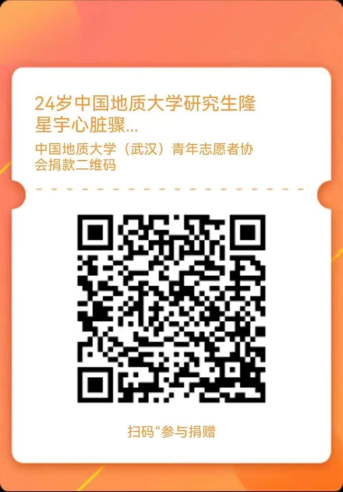 据了解,地大将持续关注隆星宇的治疗进展,为隆星宇同学提供帮助。如果爱心人士想帮助这位年轻的学子,可扫描下方二维码参与捐赠。