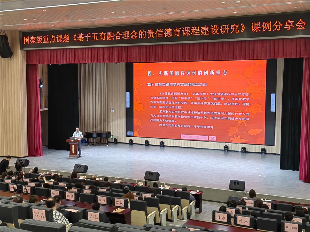 华中师范大学杜时忠教授,华中科技大学刘长海教授进行现场指导。刘教授进行了《实践类德育课例开发指要》专题报告,从为什么要重视实践类德育课例到实践类德育课例的创新样态,从实践类德育课例开发的理论基础到实践类德育课例开发应该遵循的基本原则等全方位给大家进行了具体的指导。杜教授认为此课题研究立足五育融合的教育理念,有助于提高学校德育实效,打造区域德育特色,整体推进区域德育,具有很强的实践指导价值。