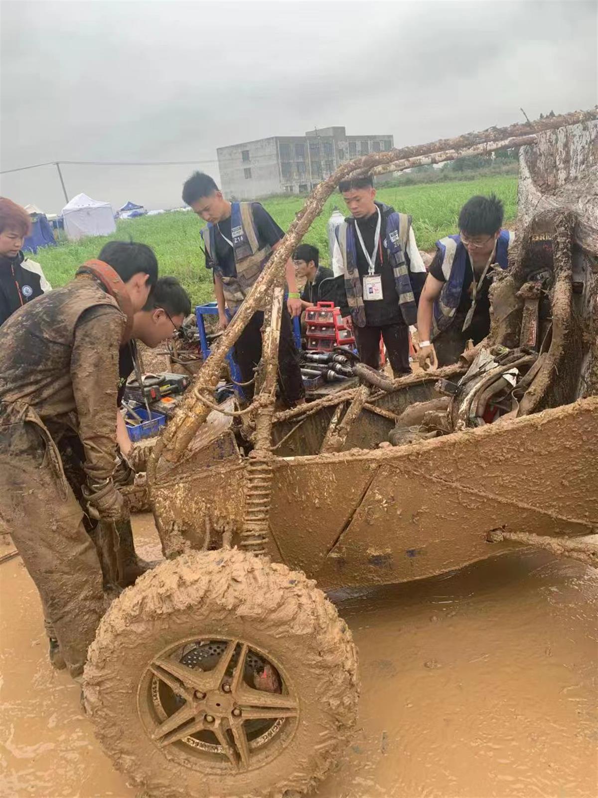 当日在雨中泥中跑车打耐久赛弄成“泥人”的光谷之翼车队车手姜尊便是如此,现为武软汽车检测与维修技术专业大三学生的他下个月就要毕业了,这些天一直在企业顶岗实习,听得赛事重启,他立即向企业说明情况,回队效力,调试车子、重启训练,每天除了睡觉都泡在基地。这次耐久赛中,面对恶劣的天气和路况,他作为2022届车队队长和2023届车队队长龙堃接力奋斗,持续扩大战果,最终将车队送上一等奖的领奖台。“和我一起归队的老队员还有4名,大家回来备赛都克服了许多困难,但看到我们亲手造的车有这么好的成绩,值了!”他说。