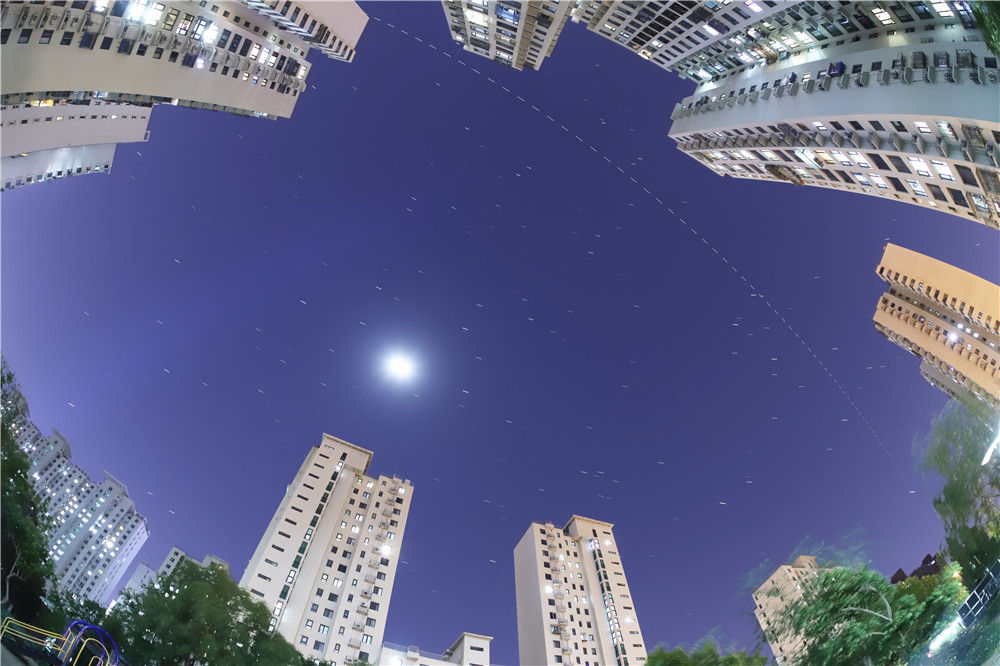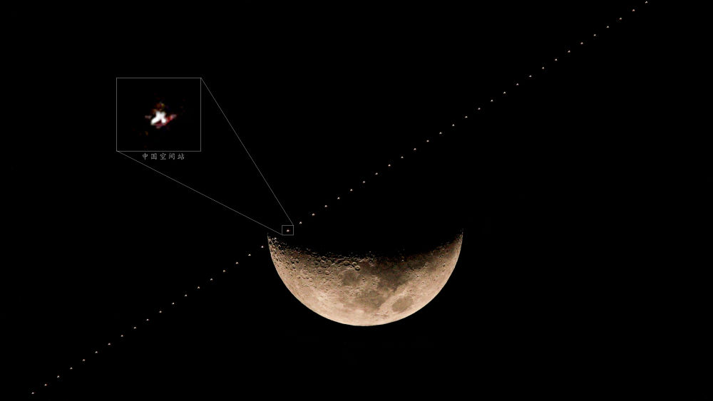 4月30日,中国空间站飞过北京上空。吕张悠然摄
