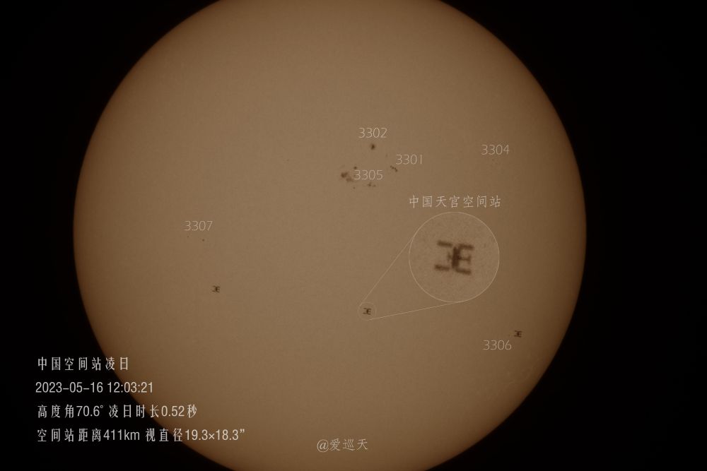 5月16日,在太原上空拍摄到的中国空间站“凌日”。苏少杰摄