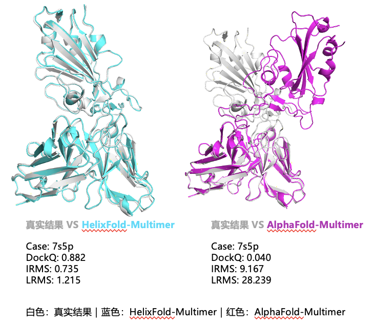 这一算法还被应用于业界公认的抗原抗体匹配的任务中,为新冠病毒的刺突蛋白准确预测了抗原抗体对接面,预测的复合体构象与真实实验值的重合度高于主流蛋白结构预测模型(见下图)。