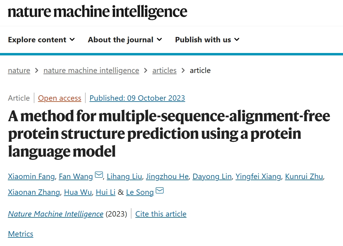 该论文显示,当前蛋白质结构预测的人工智能大模型,如AlphaFold2(阿尔法折叠2),在预测蛋白质结构之前需要做一个前置工作,就是搜索蛋白的同源进化信息,这一工作比较耗时,需要几十分钟甚至更久。