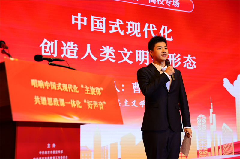 10月20日下午,由南京市委宣传部、市委教育工委、市教育局主办,南京大学党委宣传部和马克思主义学院、市教师发展学院共同承办的南京“思政好声音”高校专场,在南京大学科学技术馆顺利举办。南京大学党委副书记陈云松现场致辞。省市相关部门领导,驻宁高校代表,各区教育局、市属高校、直属学校(单位)负责人等参加活动。本场活动分为“导航”“启航”“护航”“远航”四个篇章,通过高校师生微党课、大中小学思政课、高校实践主题课等多种形式,多维度展现南京大中小学思政课一体化建设和高校思政课建设成果,共同唱响中国式现代化“主旋律”。
