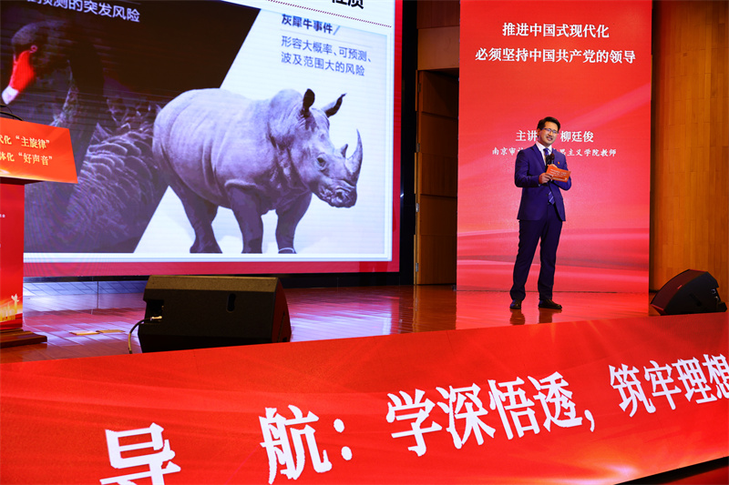 活动第一篇章从学生和教师两个视角理解和把握中国式现代化理论,由南京大学马克思主义学院曹彬同学和南京审计大学马克思主义学院柳廷俊老师以模拟党课的形式,以及玄武区大中小学思政课一体化建设联盟以同上一堂大思政课的形式,讲述和展示中国式现代化“是什么”。