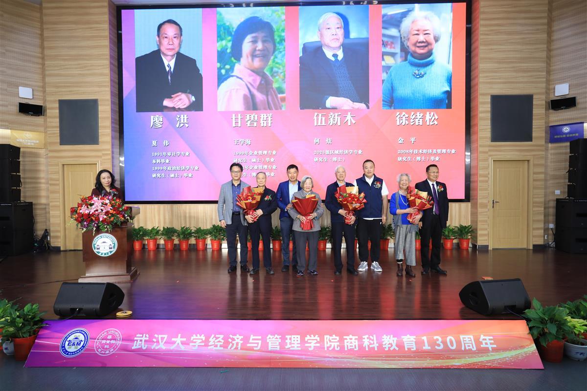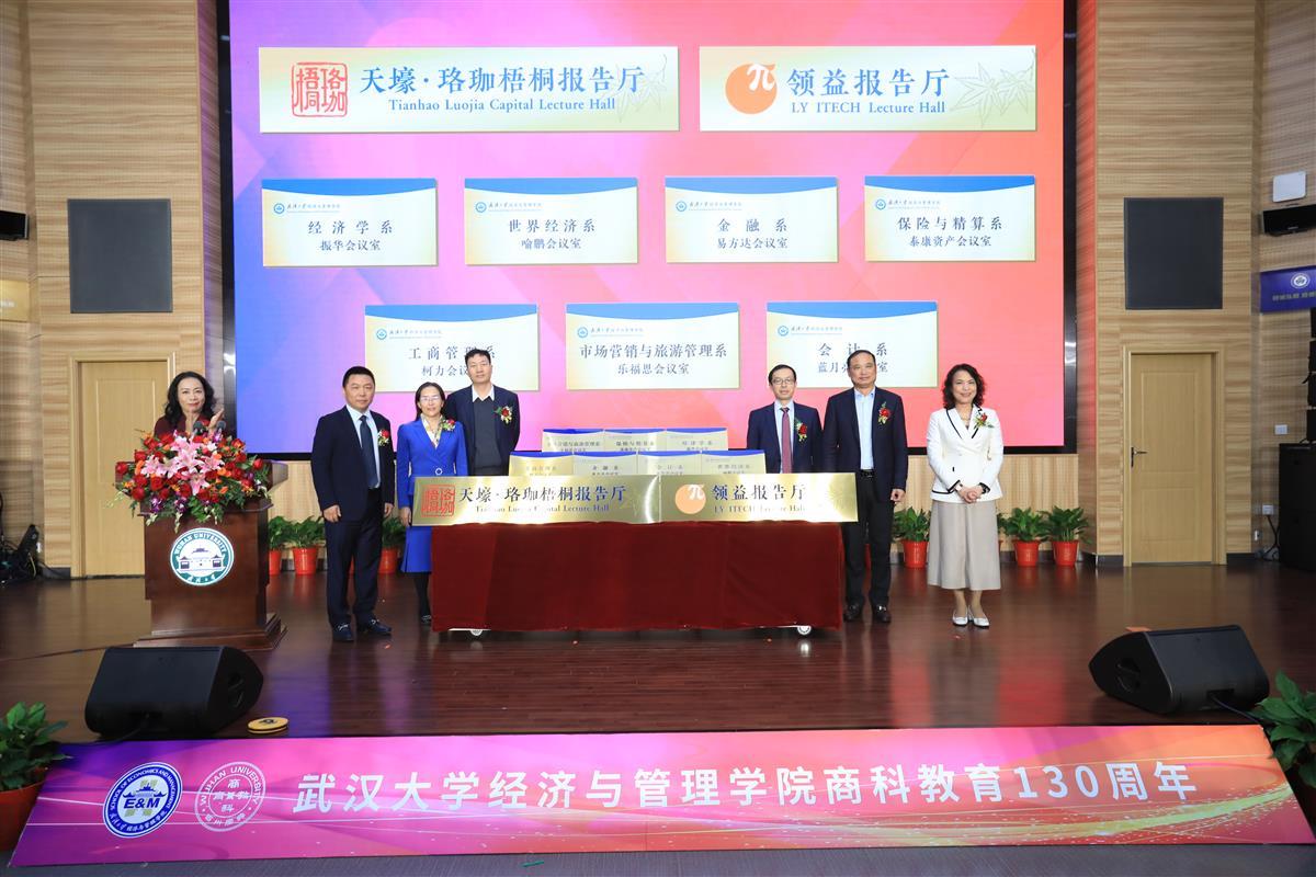 随后,学院教师代表齐绍洲教授,本科生代表连雅琼也进行了发言。武汉大学经济与管理学院党委书记姜星莉主持了校友代表向老教师献花仪式和校友捐赠冠名揭牌仪式。会后,与会嘉宾参观了院史文化墙、高水平科研成果展、科研机构展等院庆系列展览。