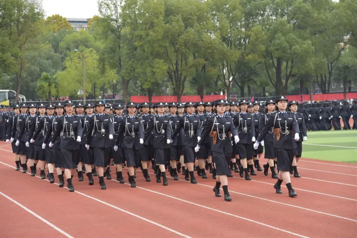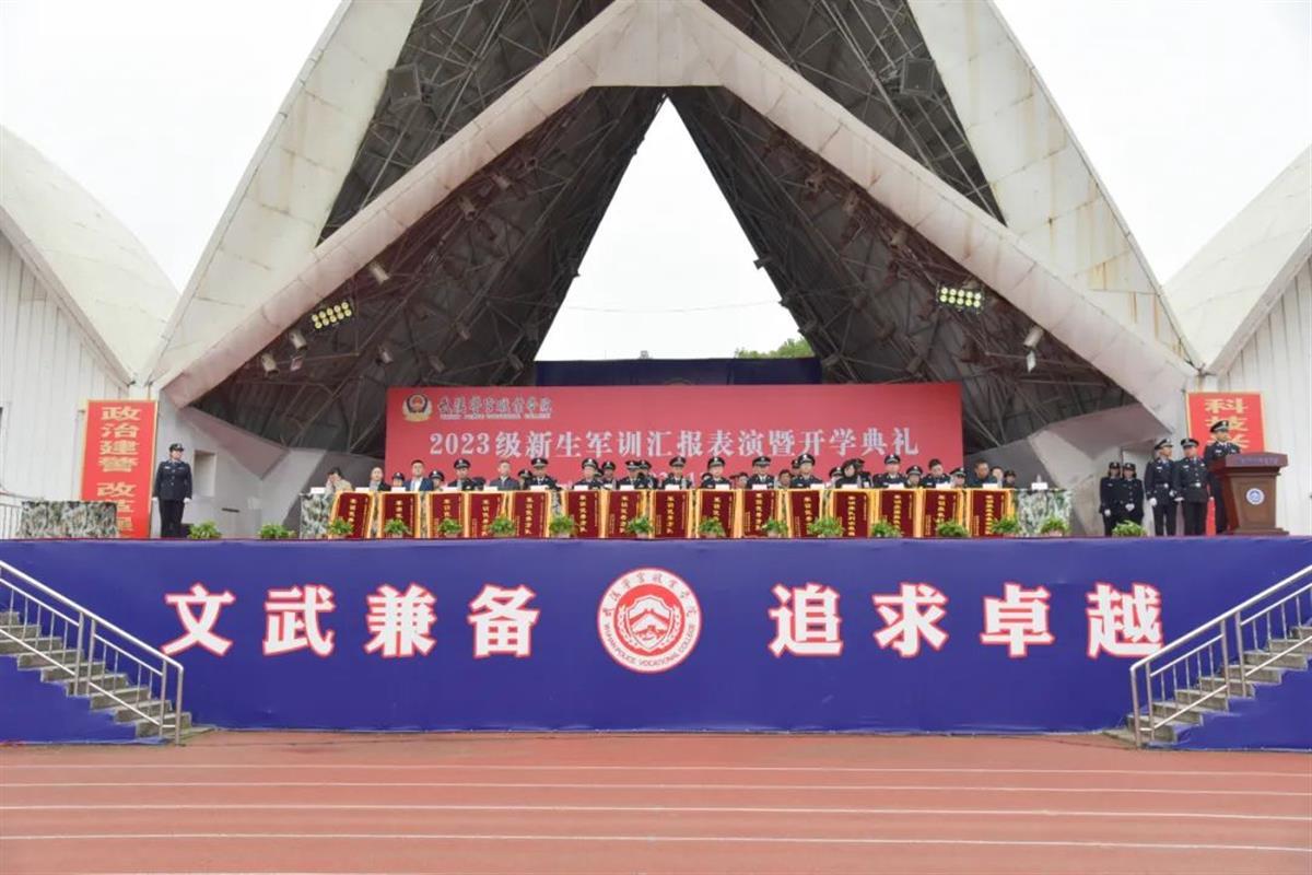 11月10日下午,在武汉警官职业学院东西湖校区的操场,随着升旗仪式开始,2023级新生军训汇报表演暨开学典礼正式拉开帷幕。学校的军训旅国旗、警旗、警徽、校旗、营旗、教官方队,一营56式劈枪方队等35个方队依次走过主席台,他们统一着装、整齐列队,展示着警校生的青春风采。