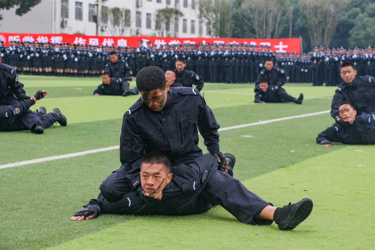 极目新闻记者看到,匕首操方队展示结束后,由2023级新生组成的反恐手语方队、应急棍术方队、刺杀操方队、擒敌拳方队、警棍盾牌操、防爆反恐方队依次进行汇报表演,将现场氛围推向了高潮。据了解,2023级3000多名新生编成5个营,在100名教官的带领下进行了为期两个月的军训,共学习15节入学教育课程,警校生们完成了磨砺青春和焕然蜕变。