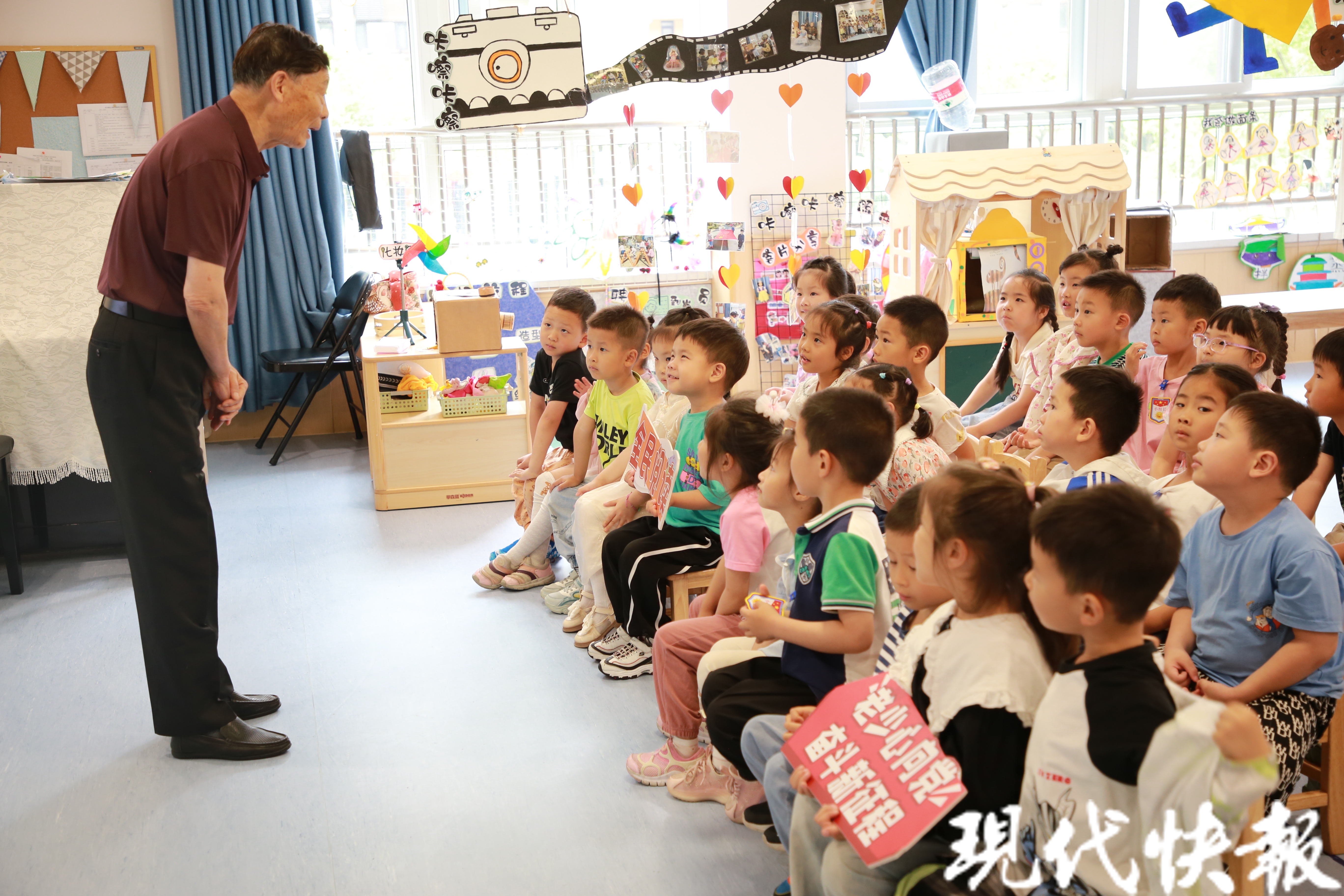 △冯吉仁向幼儿园的孩子们讲述了南通近些年发生的巨大变化