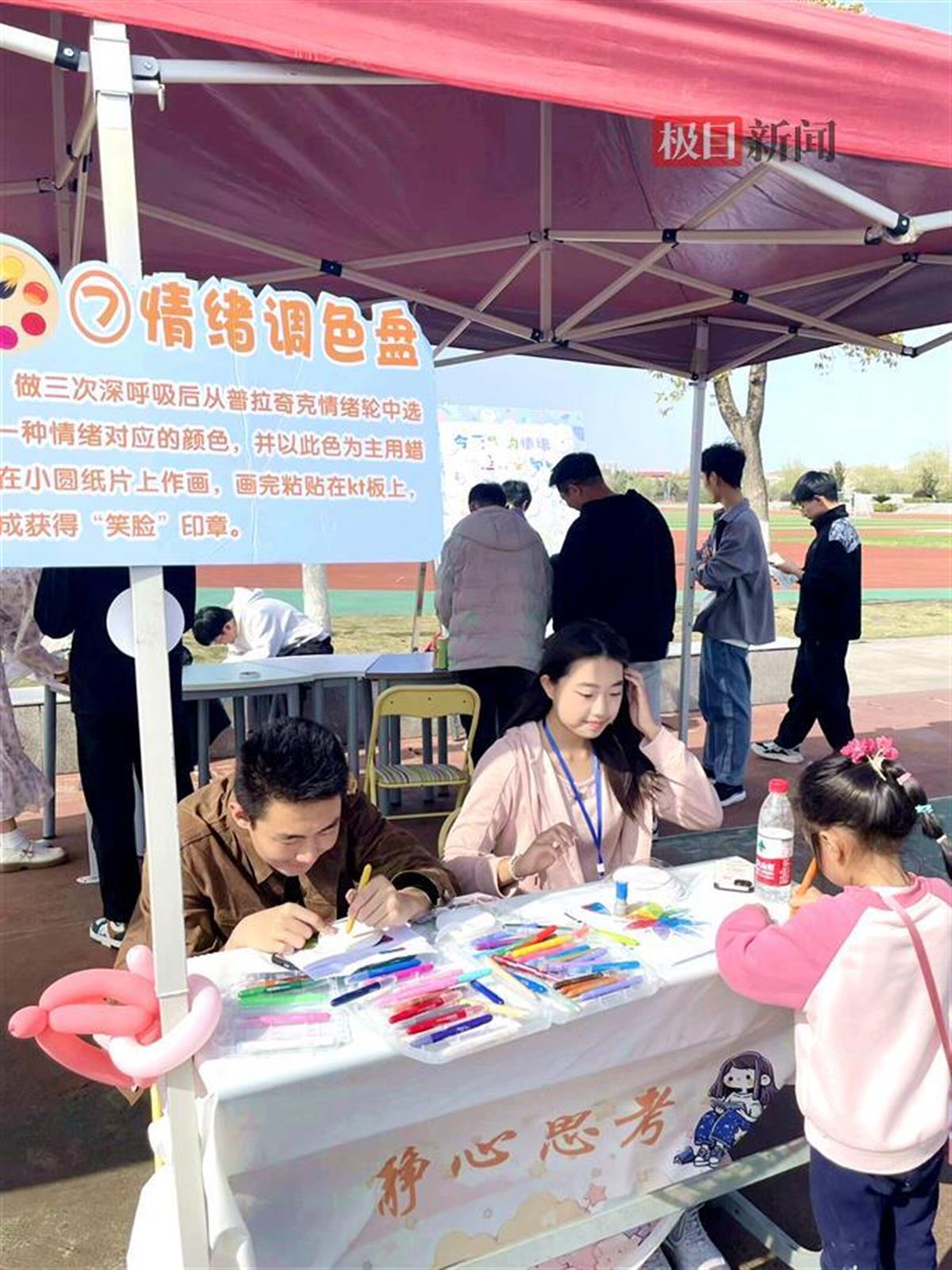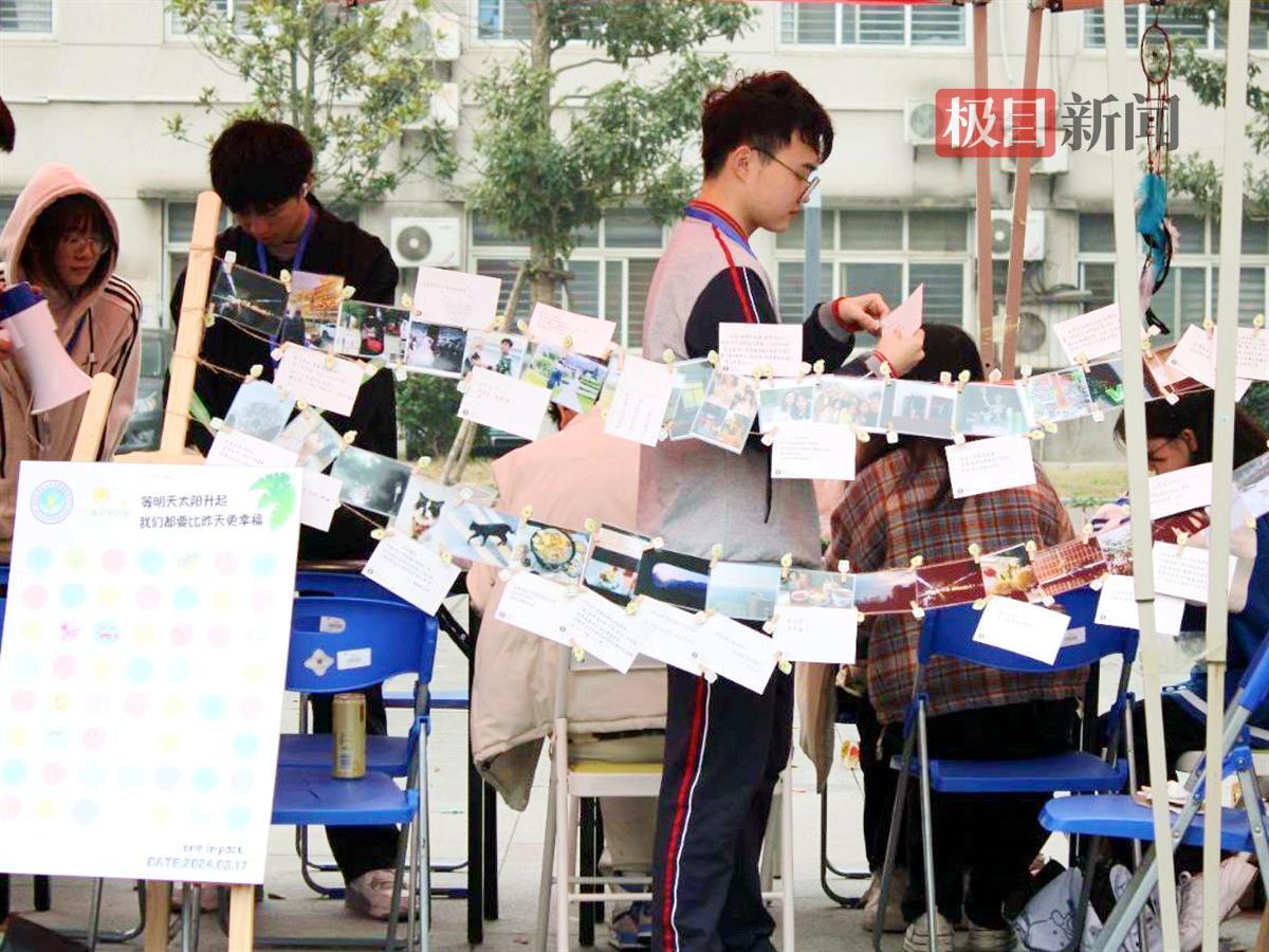 “等明天太阳升起,我们都要比昨天更幸福。”在“诗歌麻辣烫”站点,大家将散落的词组拼贴成一首首韵味十足的诗歌;在“情绪调色盘”站点,参与者将情绪涂鸦成五彩斑斓的图画;在“幸福博物馆”站点,参与者驻足回忆幸福时刻;在“幸福传递”项目,参与者通过吹乒乓球体验坚持与收获的喜悦;在“一锤定音”项目,参与者奋力锤走生活中的坏情绪,释放压力……10多个趣味横生的游戏吸引了近千名师生参与,游园会现场欢声笑语不断,大家用参加游戏获得的幸福印章兑换“套圈圈”和“刮刮乐”。
