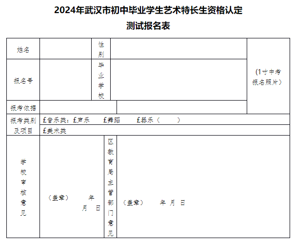 2024年武汉市初中毕业学生艺术特长生资格认定工作方案