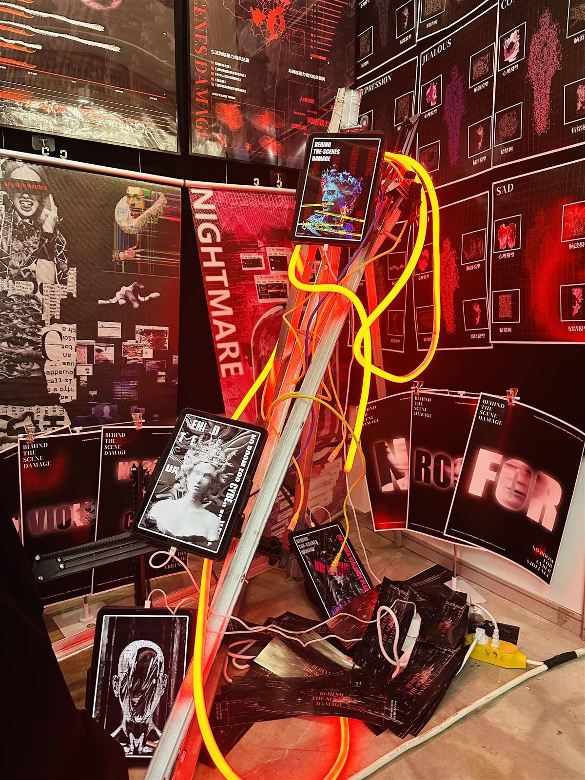 记者注意到,参展作品本身类型多样,包括生成式艺术、动态海报、书籍装帧、品牌设计、虚拟现实、三维动画、数字影像等。同时,每一件作品并未仅仅停留在单一载体,而是多元丰富呈现,围绕自己关注的某个话题,创意设计了手机壳、耳机、纪念卡、徽章、冰箱贴等多种周边产品,还有平面设计、影像动画、场景交互等不同表达手段。