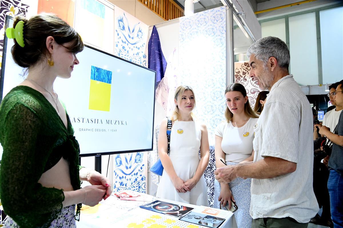 “此次活动必将为两校搭建更高层次、更多维度的合作平台,加快两校人才培养和人文交流的‘双向奔赴’,开启合作办学的新征程。”武汉理工大学副校长麦立强在致辞中指出,扩大教育对外开放是实现教育强国的重要途径,中外合作办学项目要在其中发挥重要作用。此次两校三院举办的毕业联展,正是该校中外合作办学中英艺术项目充分发挥两校桥梁作用的体现。