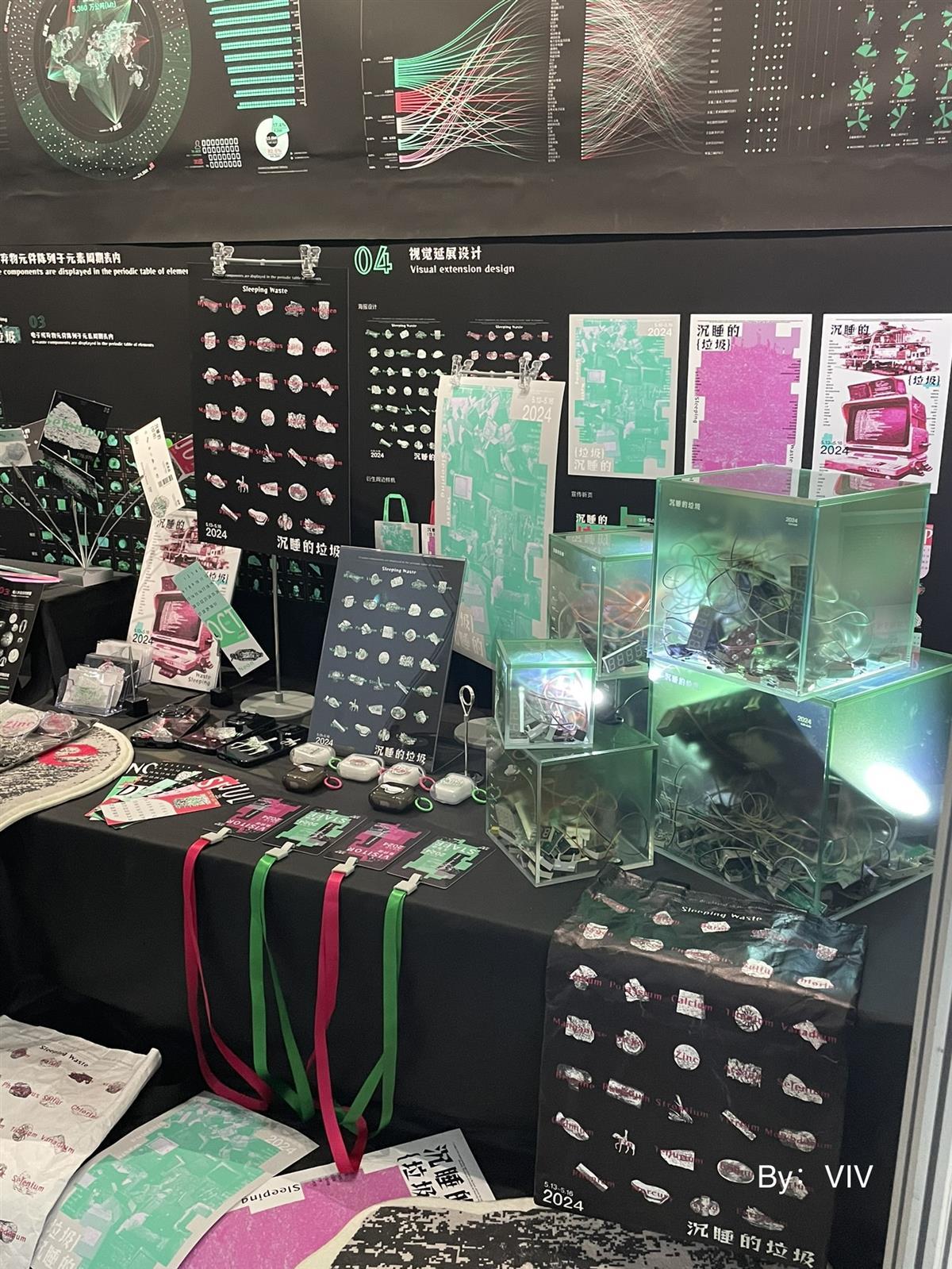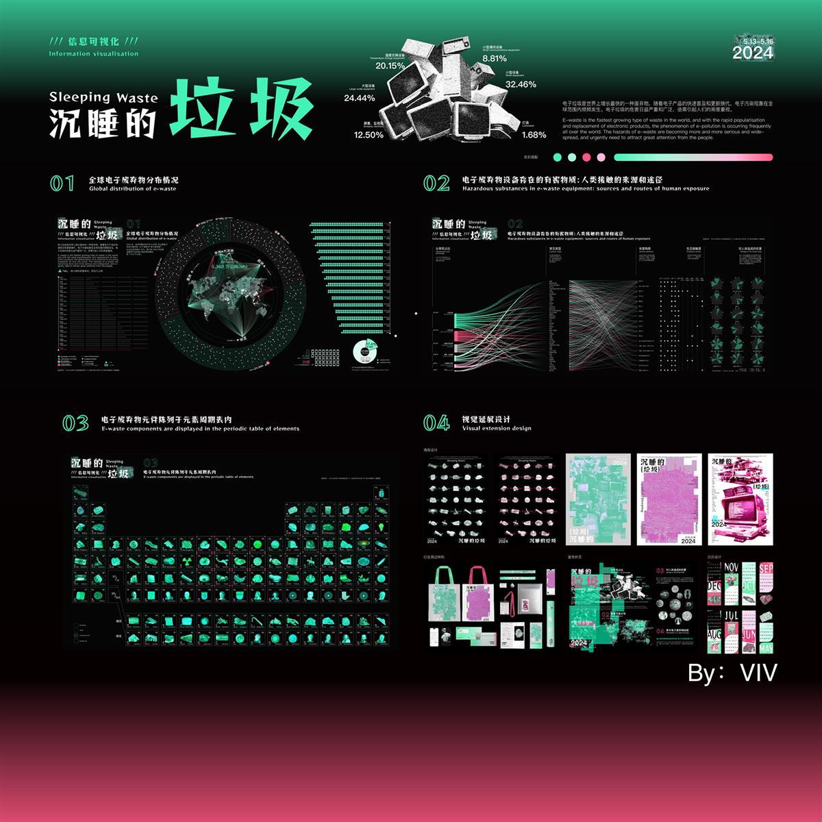 刘小薇同学带来作品《沉睡的垃圾》,关注电子废弃物增长问题。她将电子废弃物相关的大量数据及造成的危害程度进行视觉转化设计,同时别出心裁地将电子垃圾所含的有毒物质、贵金属与元素周期表对照,设计了一款款手机支架和手机壳,提高人们对合理回收电子垃圾的关注度。