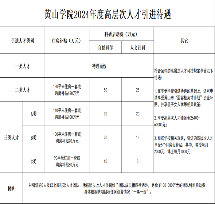 日前,黄山学院发布2024年度高层次人才引进计划,欢迎有志于高等教育事业的杰出人才加盟。在待遇方面,一类人才面议,二类人才享受包括130万元购房补贴等优厚待遇。