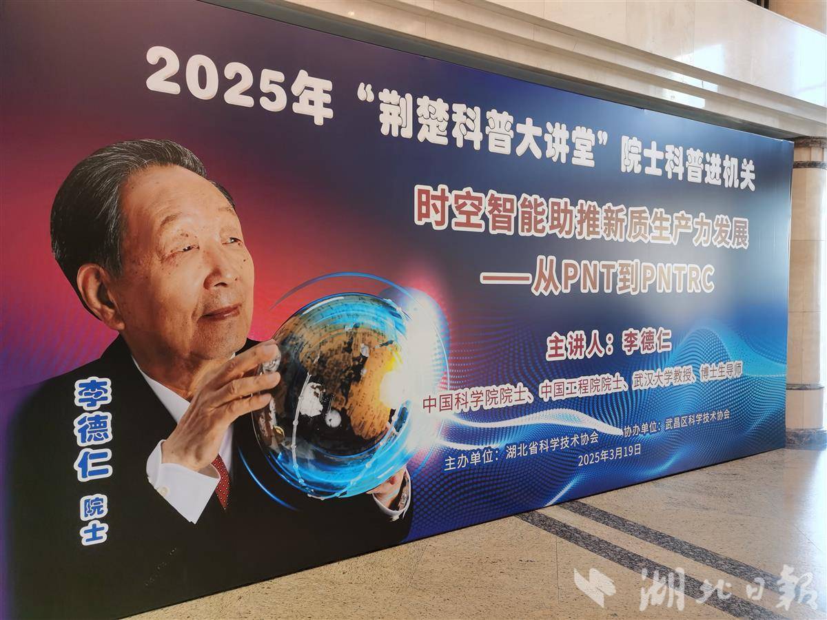 湖北日报讯(记者包东喜、通讯员高笛、肖凯)3月19日,今年首场“荆楚科普大讲堂”(科协讲堂)院士科普报告会在武汉市洪山礼堂开讲。武汉大学教授、中国科学院院士、中国工程院院士、2023年度国家最高科学技术奖获得者李德仁应邀作首场报告,他以《时空智能助推新质生产力发展》为题,为全省400名机关干部描绘了时空智能的广泛应用场景。