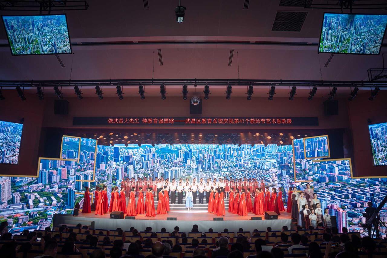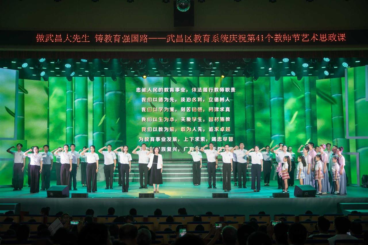 9月9日上午,武昌区教育系统在武汉市第二职业教育中心学校举行了一场别开生面的教师节活动——“做武昌大先生,铸教育强国路”艺术思政课,以丰富多彩的文艺表演致敬全区教师,传递教育初心与使命。