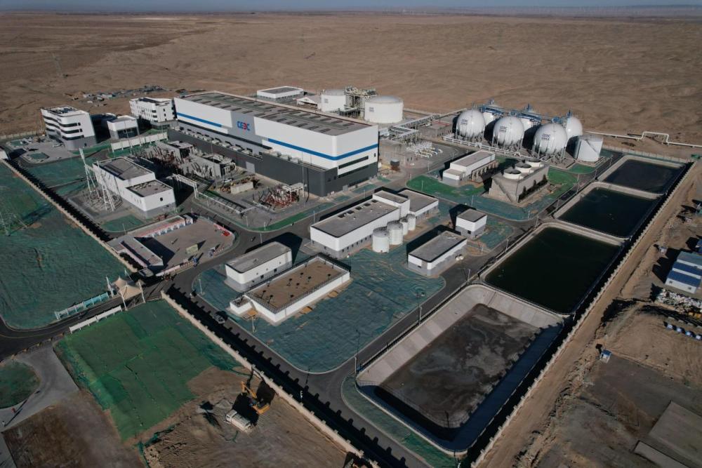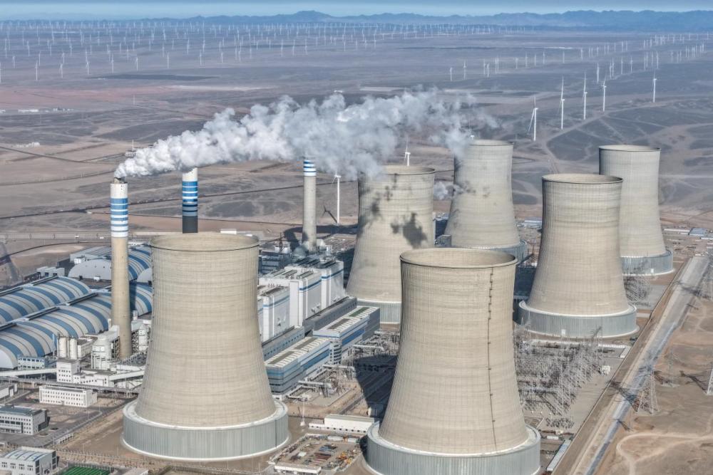 这是11月19日在甘肃省酒泉市瓜州县拍摄的甘肃电投常乐电厂外景(无人机照片)。新华社记者 郎兵兵 摄