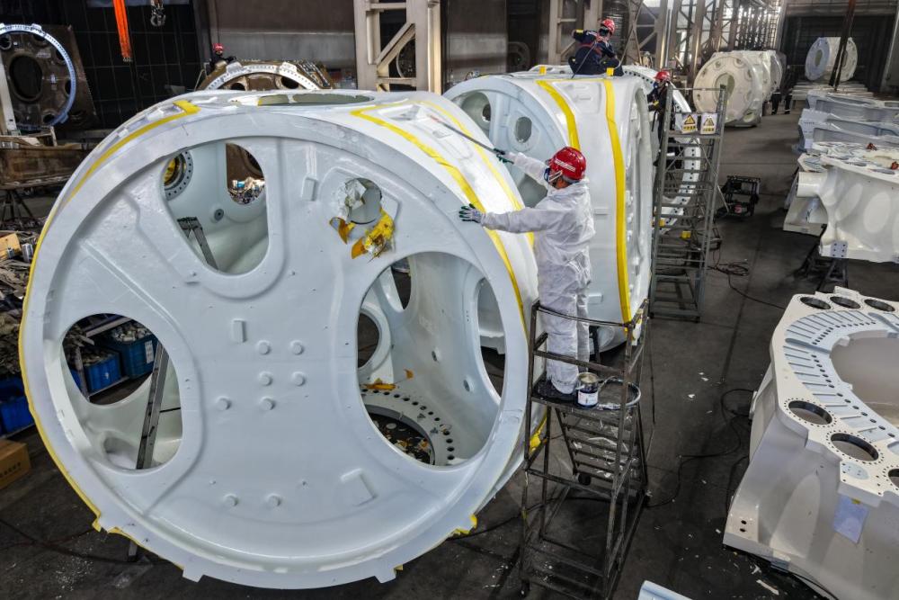 位于酒泉经济技术开发区的日月重工(甘肃)有限公司生产车间,机器轰鸣,一派繁忙景象。该公司是国内风力发电领域关键设备的头部供应商,主要从事球墨铸铁大型风电铸件的设计研发和生产销售。企业2022年开工建设,目前一期投资12.3亿元、年产10万吨的大型铸造及精加工生产线已经投入生产。