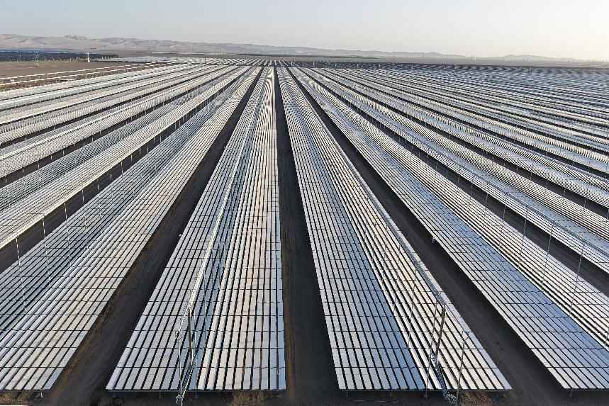 寒冬时节,位于敦煌光电产业园的国家能源集团敦煌“光热+”一体化综合能源示范项目建设来到了冲刺阶段,相当于168个标准足球场大小的戈壁滩上,上万面光热反射镜和集热杆组成的线性菲涅尔光热电站蔚为壮观。