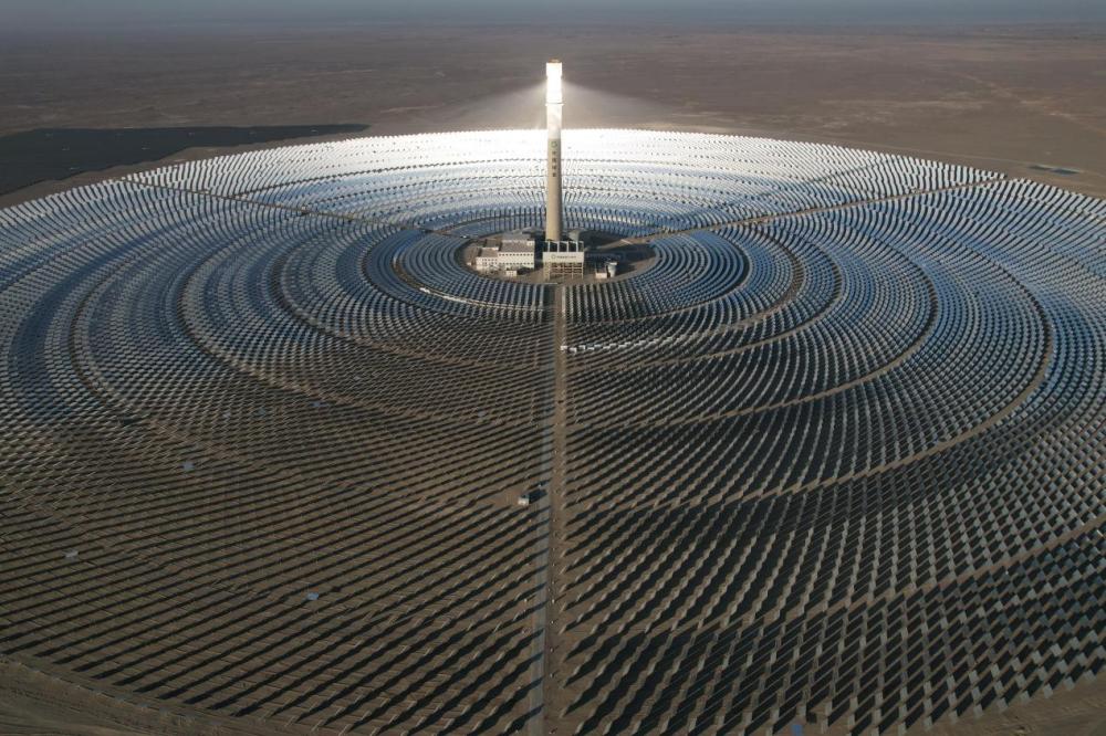 这是12月3日在甘肃省酒泉市拍摄的金塔多能互补基地10万千瓦熔盐塔式光热项目(无人机照片)。新华社记者 范培珅 摄