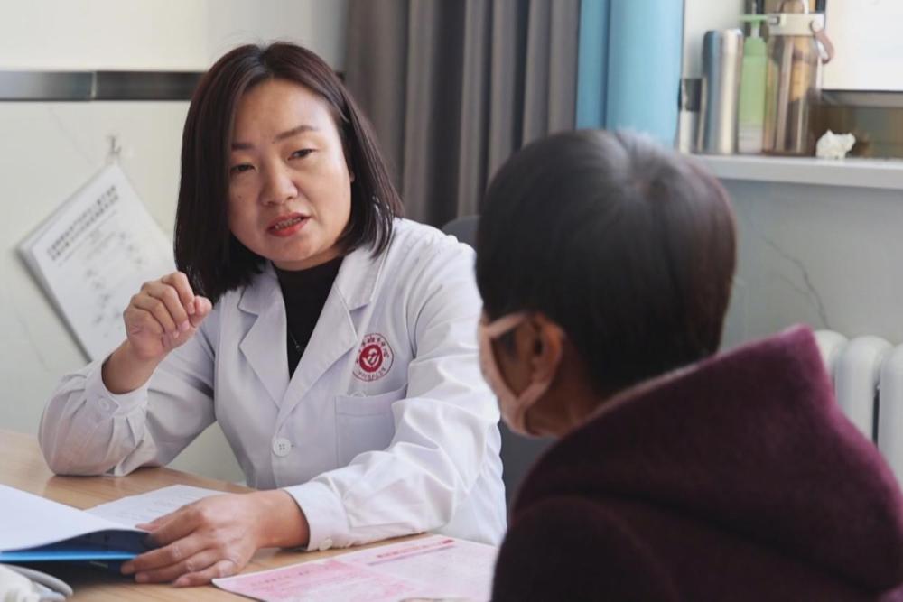 11月21日,在玉门市总医院花海分院妇科诊室,医生为患者讲解手术前的注意事项。新华社发(向阳 摄)