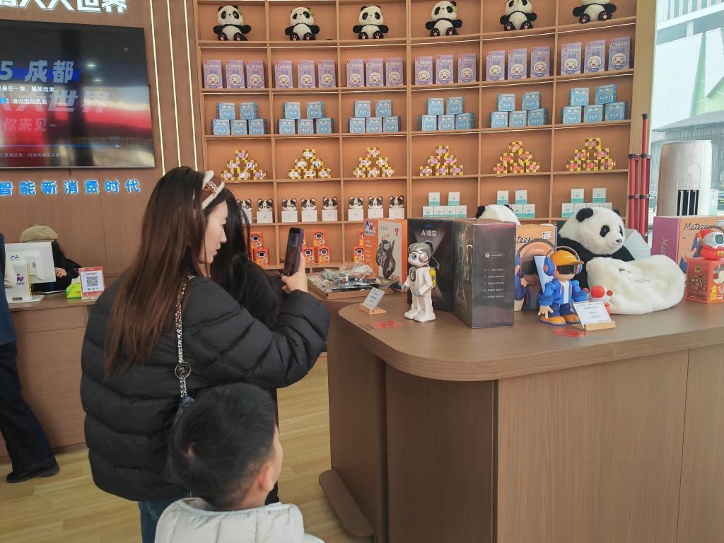 这股科技潮也激活了新春消费市场。位于春熙路的“机器人大世界”快闪店人头攒动,橱窗内一台黑白色人形机器人正热情地向路人挥手问好,店内的市民游客则在精心挑选“科技年货”。
