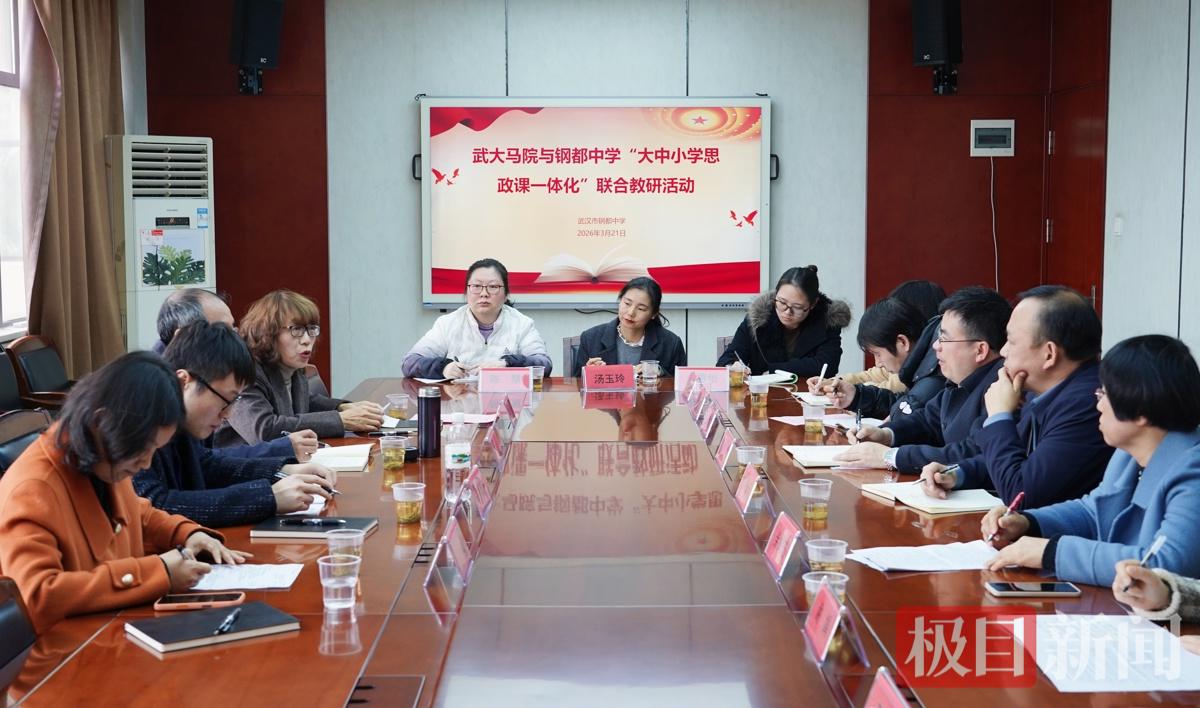 3月21日,钢都中学与武汉大学马克思主义学院首次联合举办2026届高三成人礼。仪式刚结束,一场“大中小学思政课一体化”联合教研活动随即展开。从学生提问切入,大学教授与中学教师围坐一堂,直面思政教育中的“温差”与“堵点”。
