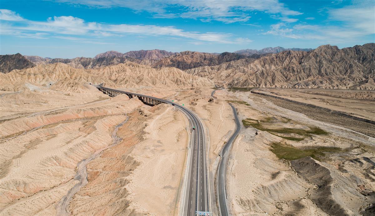 依若公路总长约294公里,起点位于新疆与青海两省区交界处的依吞布拉克镇,终点在若羌城西顺接G0612若羌至民丰高速公路起点,共设隧道4座、桥梁227座,采用双向四车道高速公路标准,设计时速平原路段120公里、山岭路段100公里。