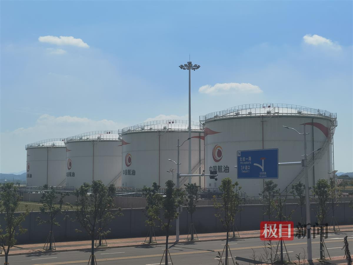 9月2日上午,极目新闻记者驱车从鄂州市鄂城区出发,沿着235省道来到位于燕矶镇的中国航油鄂州分公司,当车辆驶入航油公司时,不远处4个并排分布的大型储油罐赫然醒目,一旁分布着产业园区。