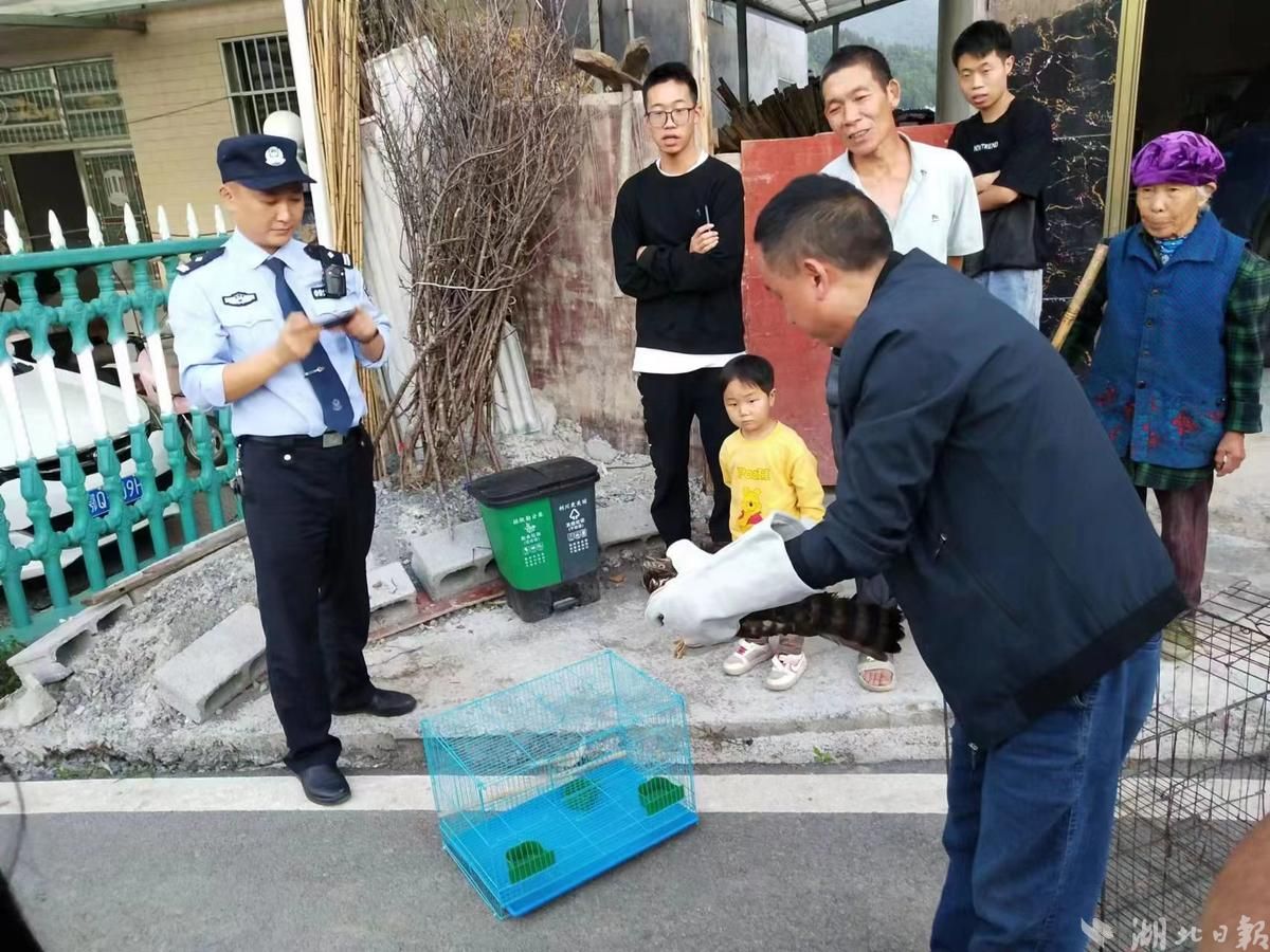 “我家这里有一只像‘老鹰’的鸟撞到玻璃后受伤跌落地上,可能还是野生保护动物,请你们来看怎么处理下!”9月5日下午18时许,凉雾派出所接到辖区九渡村群众报警求助。随后,值班民警闫骁昆联系林业部门工作人员一道赶到现场查看情况。